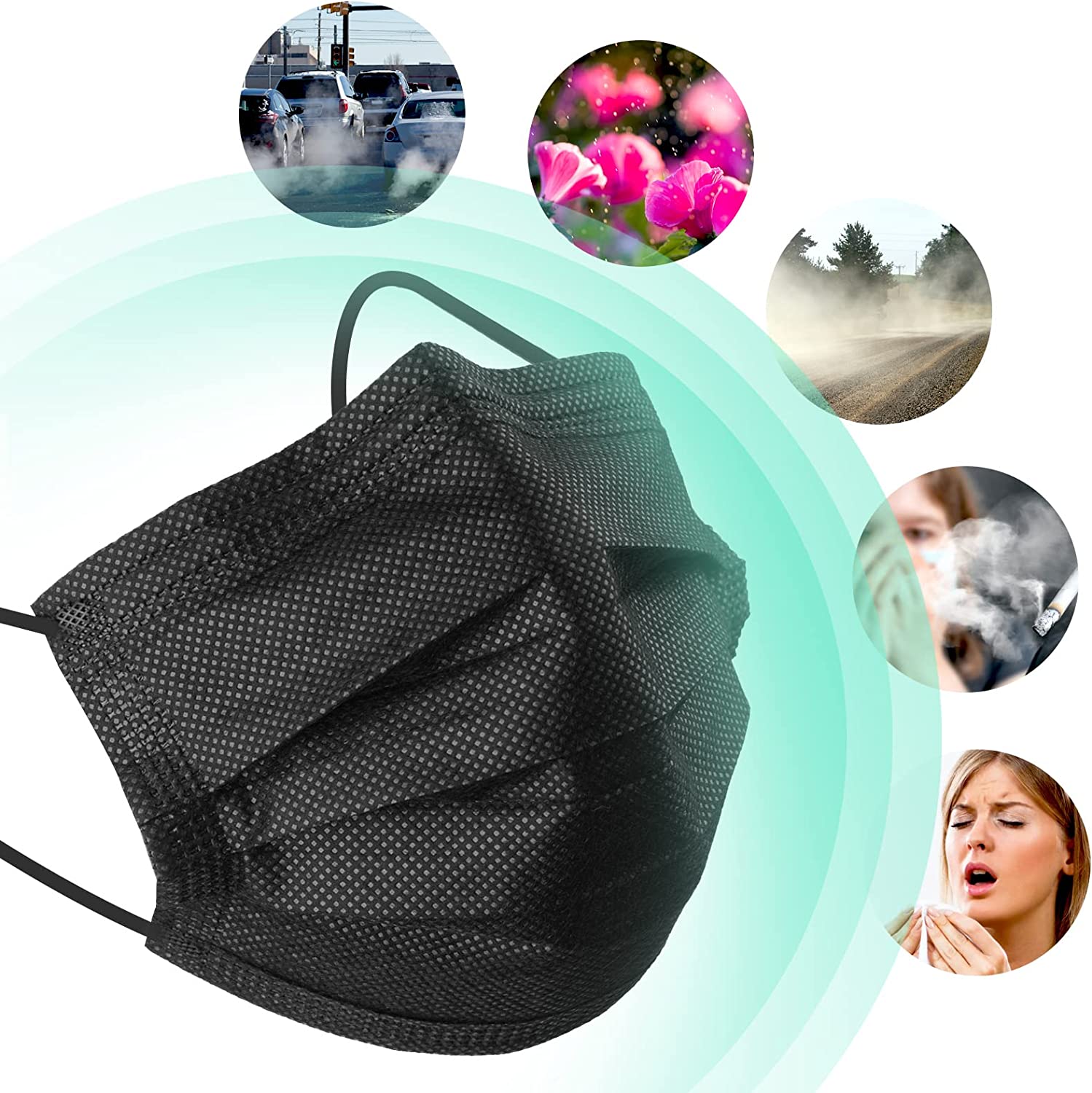100 Pack Disposable Face Masks, 3 Ply Filter Protection Black Disposable Face Masks