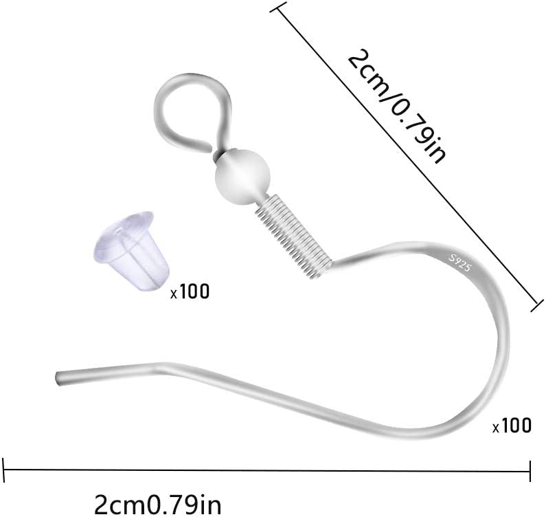 100 PCS/50 Pairs 925 Sterling Silver Earring Hooks Fish Hook Ear Wires French Wire Hooks Hypo-allergenic Jewelry Findings Earring Parts DIY Making With 100 PCS Clear Rubber Earring Safety Backs