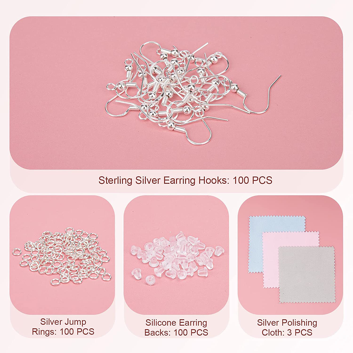 100 PCS/50 Pairs Earring Hooks, 925 Sterling Silver Hypoallergenic Earring Hooks for Jewelry Making, 300 PCS Upgraded Earring Making kit, Earring Making Supplies with Earring Backs and Jump Rings