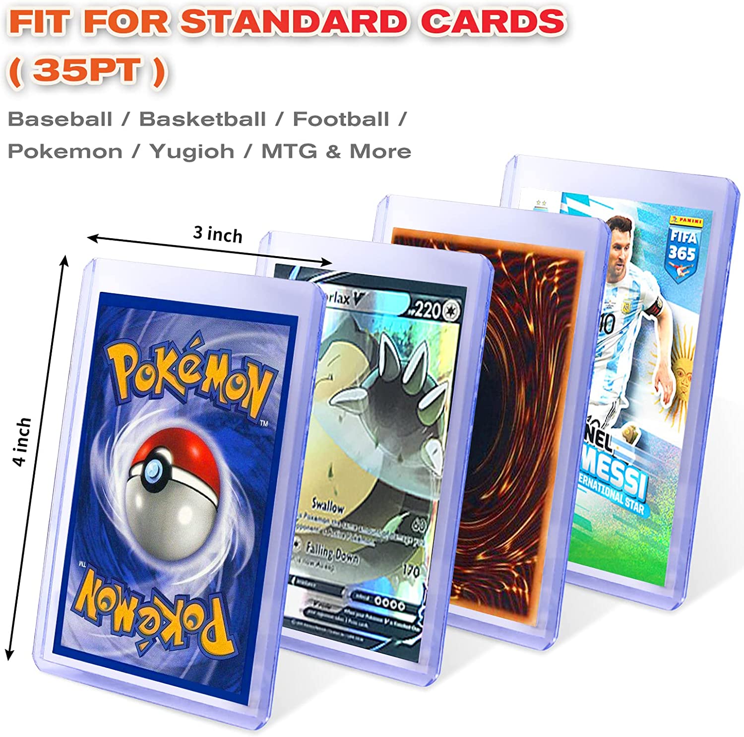 100ct 35pt Top Loaders for Cards, 3x4 Toploader Card Protectors Hard Plastic, Baseball Card Protectors, Premium Thick Hard Card Sleeves for Collectible Trading Cards