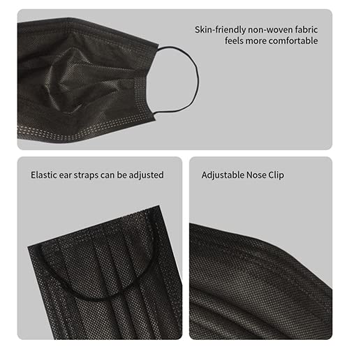 100pcs Adult Black Disposable Face Masks 3 Layer Non-Woven Masks with Soft Elastic Earloop