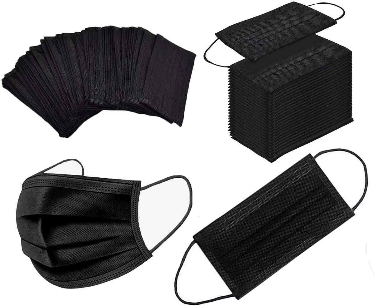 100Pcs Black Disposable Face Mask, 3 Ply Black Face Masks with Soft Elastic Ear Loops
