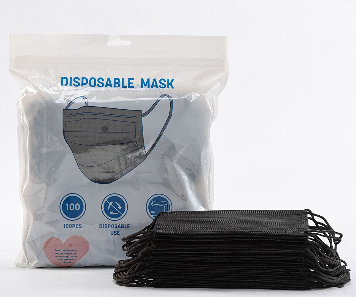100PCS Black Disposable Face Mask 3 Ply Filter Protection Breathable Face Masks