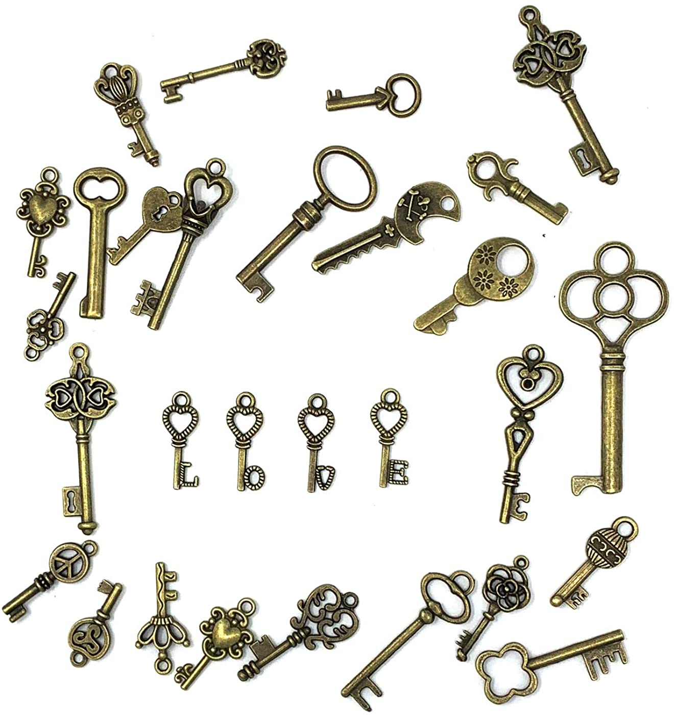 Antique rustic vintage skeleton key retro chic styling with sample sizes and different shapes.