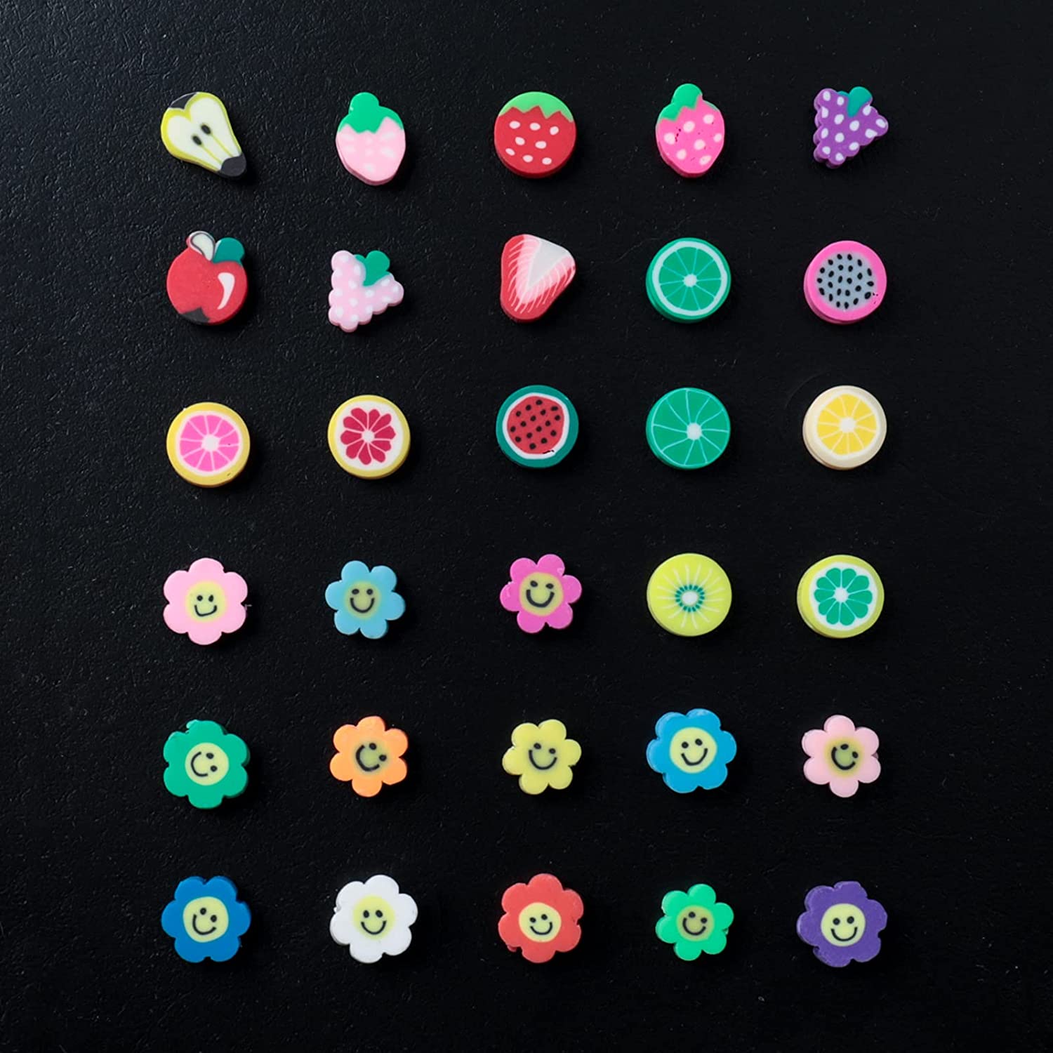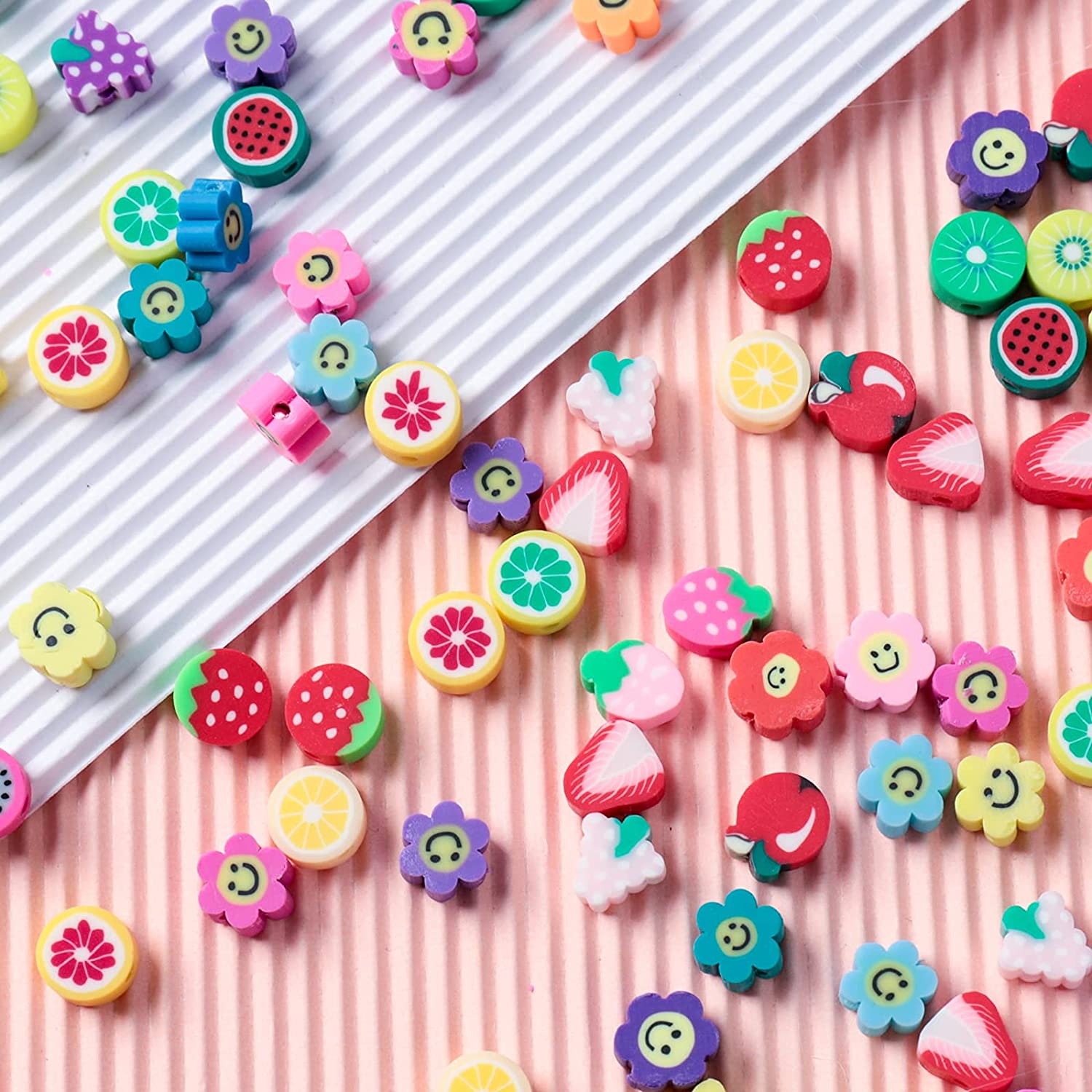 200pcs Mixed Fruit Spacer Beads Smiley Face Beads Color Polymer Clay Beads, for DIY Jewelry Bracelet Earring Necklace Craft Making Supplies
