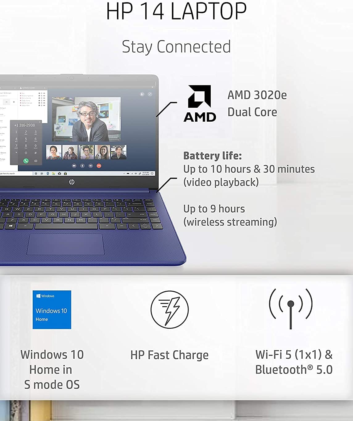 2022 Newest HP 14" HD Laptop Light-Weight, AMD 3020e(Up to 2.6GHz), 8GB RAM, 128GB SSD + 64GB eMMC, 1 Year Office 365, WiFi, Bluetooth 5, USB Type-A&C, HDMI, Webcam w/Ghost Manta Accessories