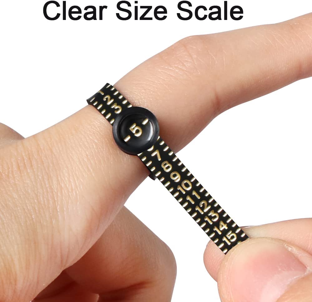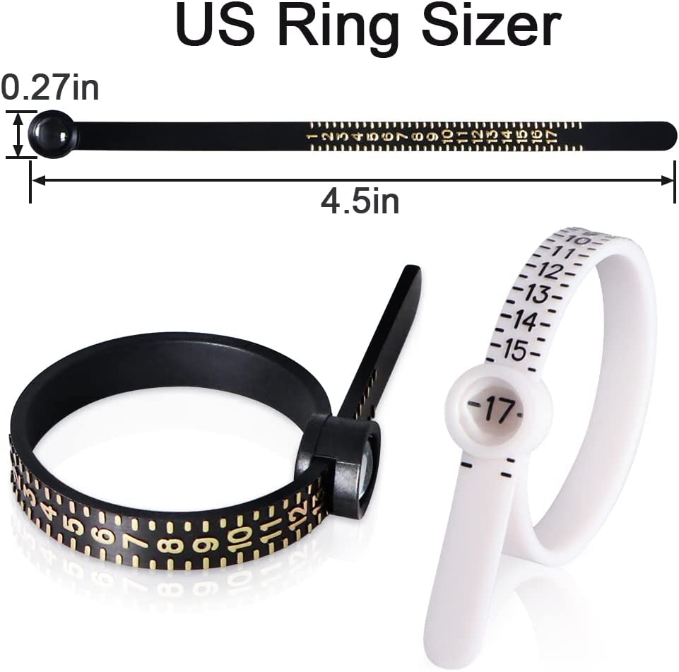 2Pcs Ring Sizer Measuring Tool Reusable Finger Size Gauge Measure Set Jewelry Sizing Tools 1-17 USA Rings Size (White+Black)