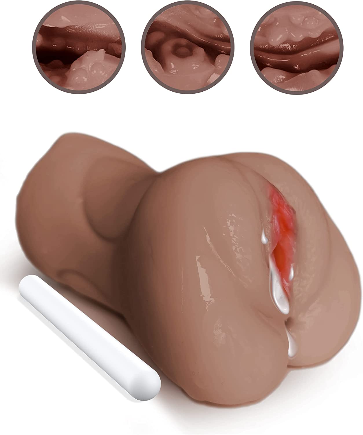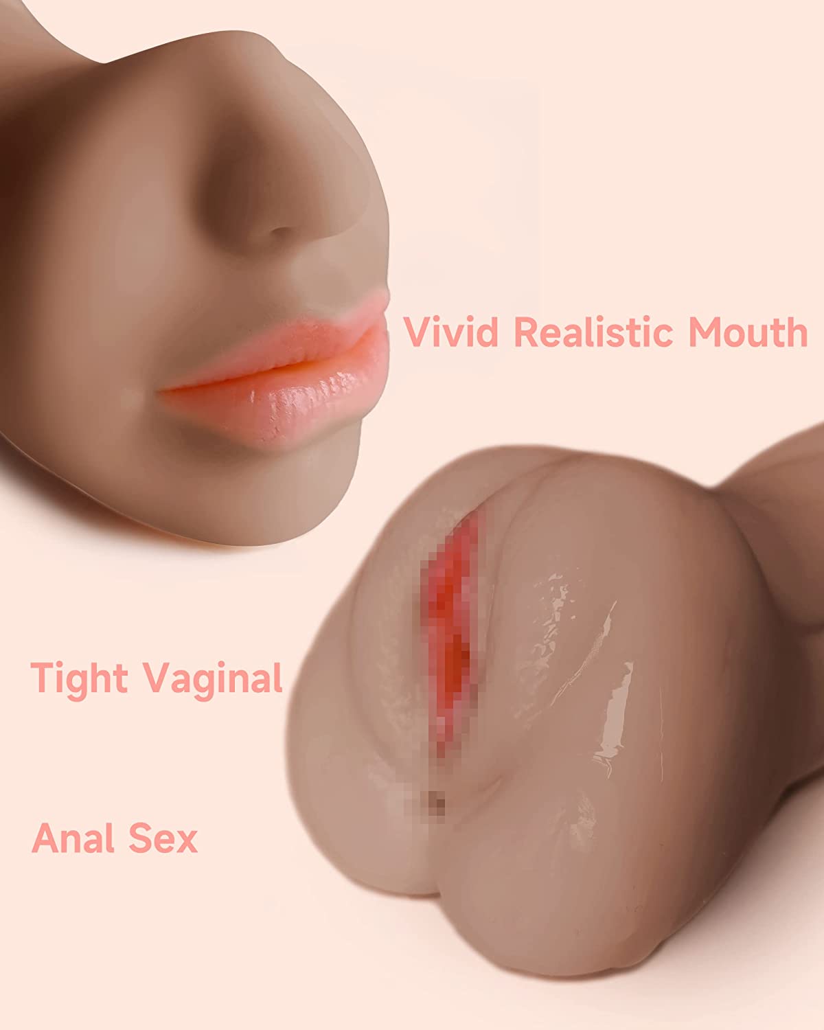 3 in 1 Male Masturbator Realistic Pocket Pussy with Drying Stick, Mansbatee Double-Ended Male Sex Toy Mouth Tongue Textured Vagina & Tight Anus for Men Masturbation (Wheat Skin)
