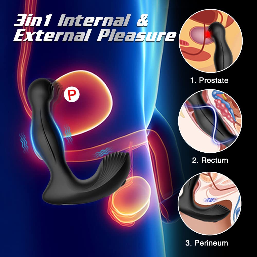 3 in 1 Wiggle Motion Prostate Massager, Visetoyz Vibrating Anal Vibrator with Remote Control Dual Motors Anal Plug Toy with 7 Wiggle & Vibration Modes, Male Anal Sex Toys for Men Women Couples