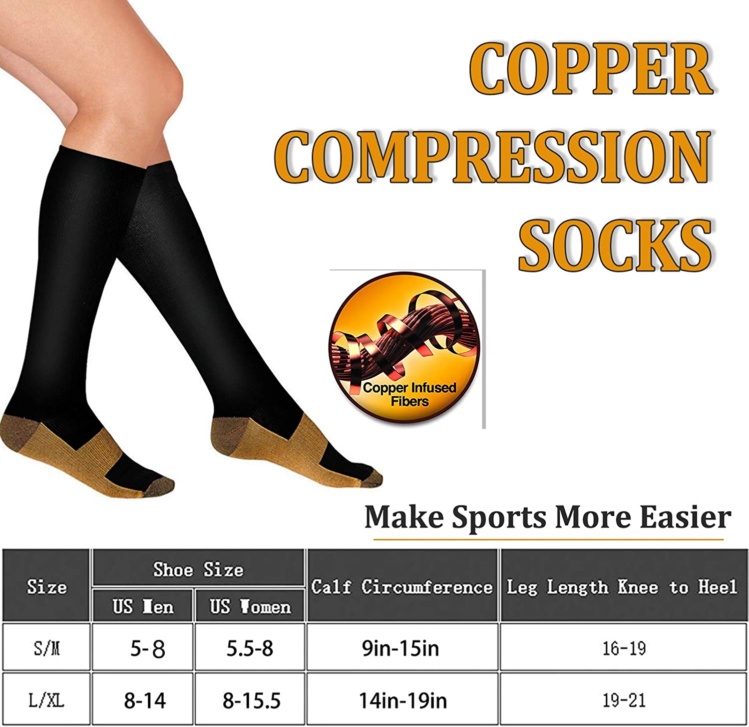 3 Pack Copper Compression Socks - Compression Socks Women & Men Circulation - Best for Medical,Running,Athletic