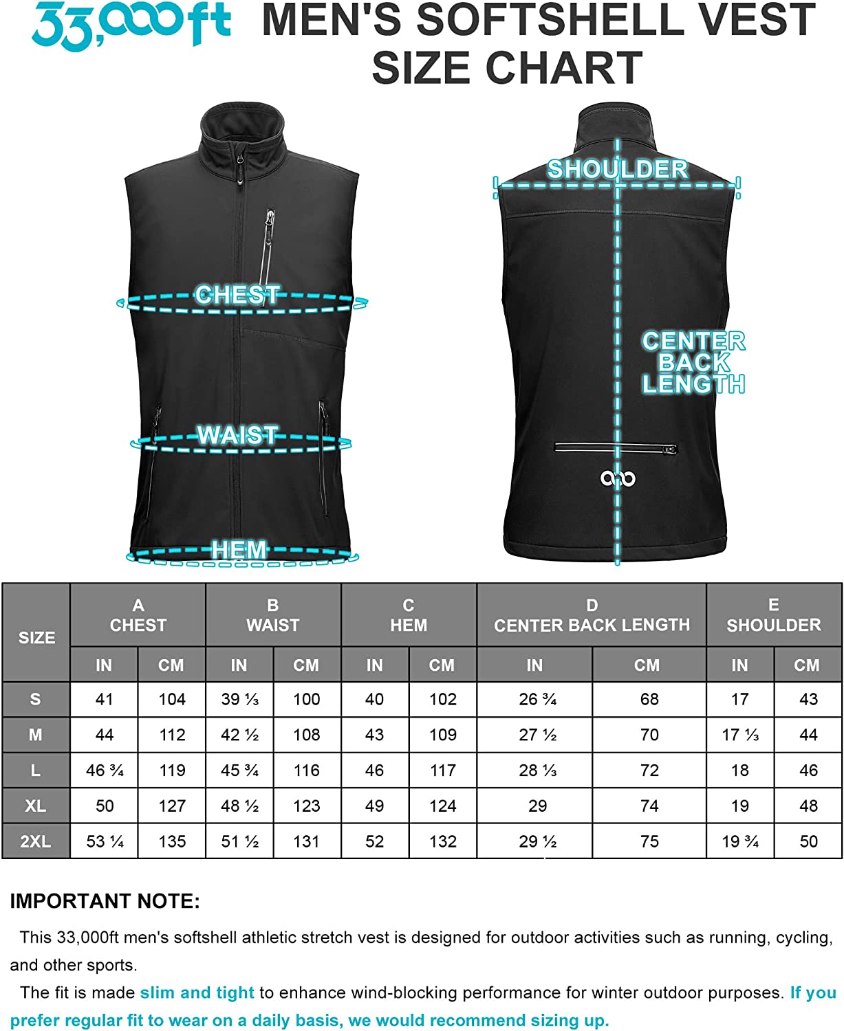 33,000ft Men's Windproof Lightweight Golf Vest Outerwear with Pockets, Softshell Sleeveless Jacket for Running Hiking Sports
