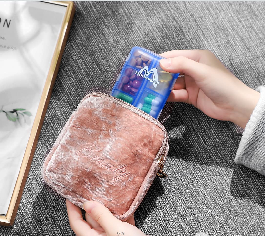 4 Pack Pill Case Portable Small Weekly Travel Pill Organizer Portable Pocket Pill Box Dispenser for Purse Vitamin Fish Oil Compartments Container Medicine Box by M MUCHENGBAO
