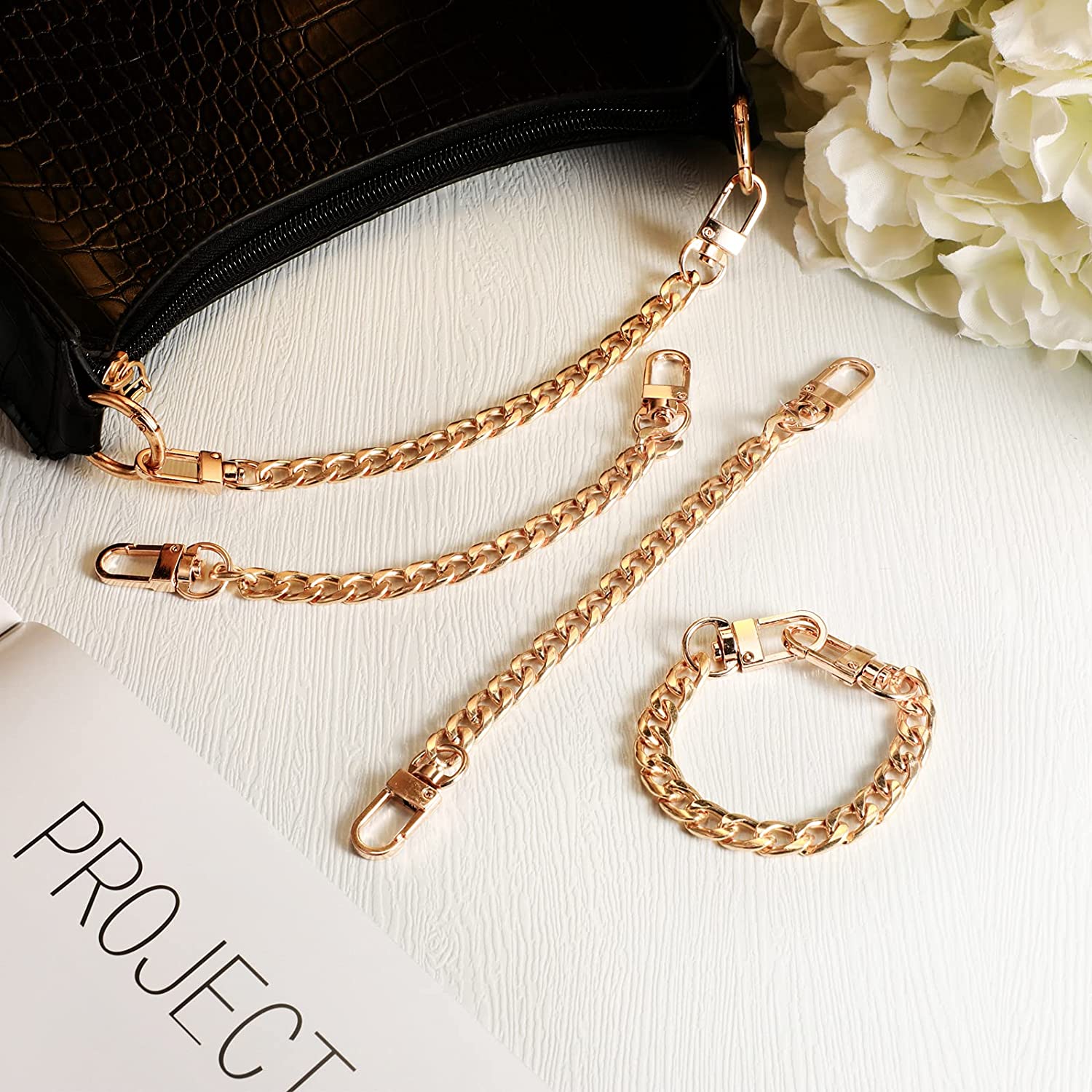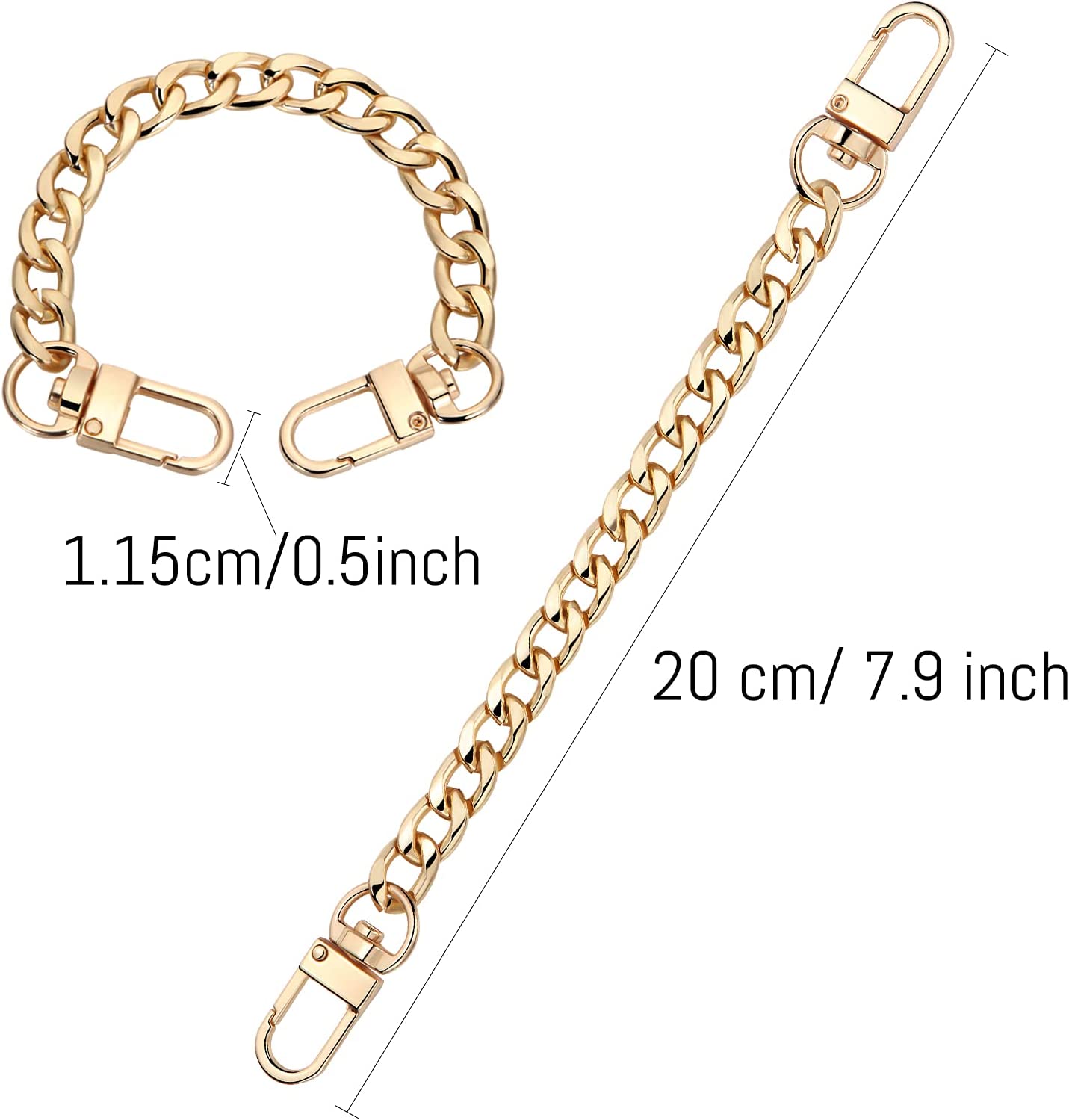 4 Pieces Purse Chain Strap Purse Strap Extender DIY Flat Chain Strap Handle Bag Accessories Charms Decoration for Purse Handbags Shoulder Bag (Gold,7.9 Inch)