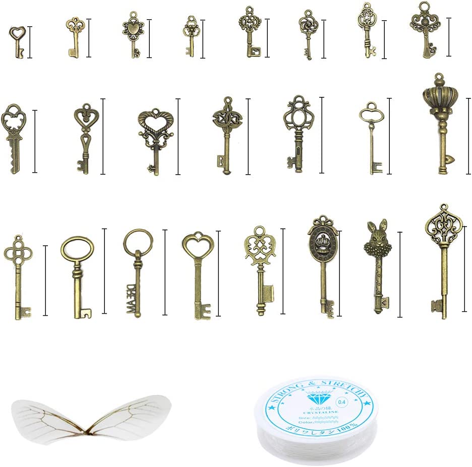 46 PCS Antique Bronze Vintage Skeleton Keys Charms Potter Flying Keys Enchanted Key With 50 Pairs Dragonfly Wings and 105 Yards Fishing Line For Jewelry Making Necklace Crafts