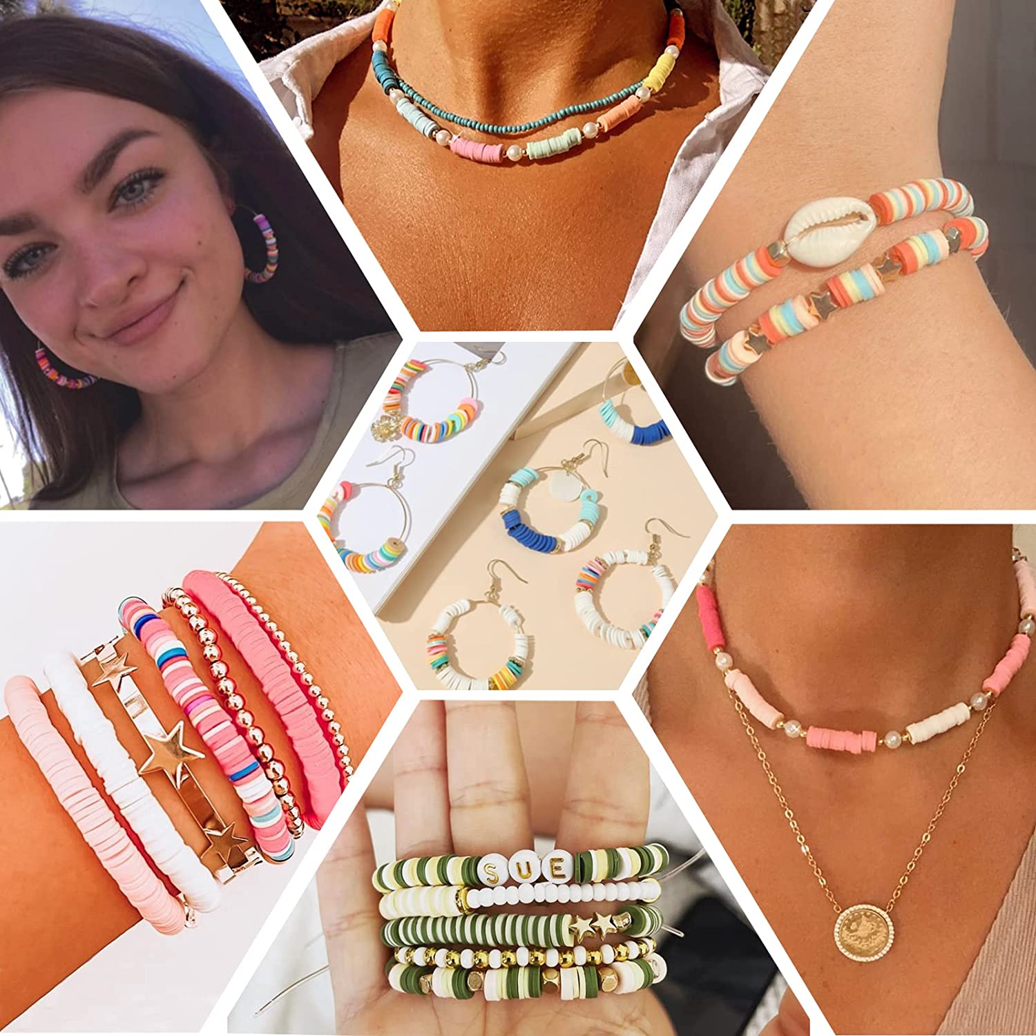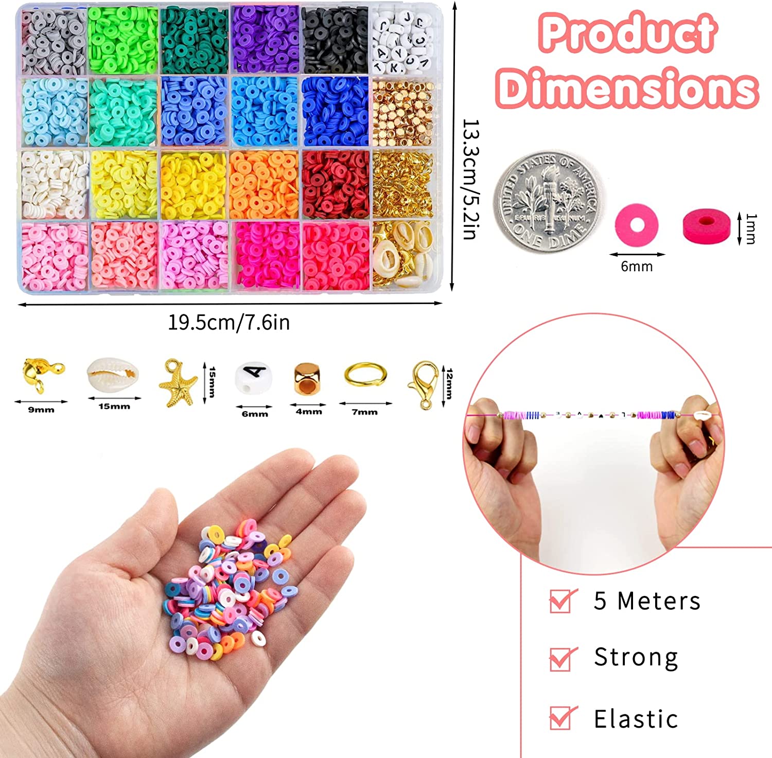 5000Pcs Clay Beads for Bracelets Making Kit, Flat Preppy Heishi Beads Polymer Clay Beads with Letter Beads, Pendant Charms and Elastic Strings for Jewelry Making Kit Bracelet Necklace Gift for Girls