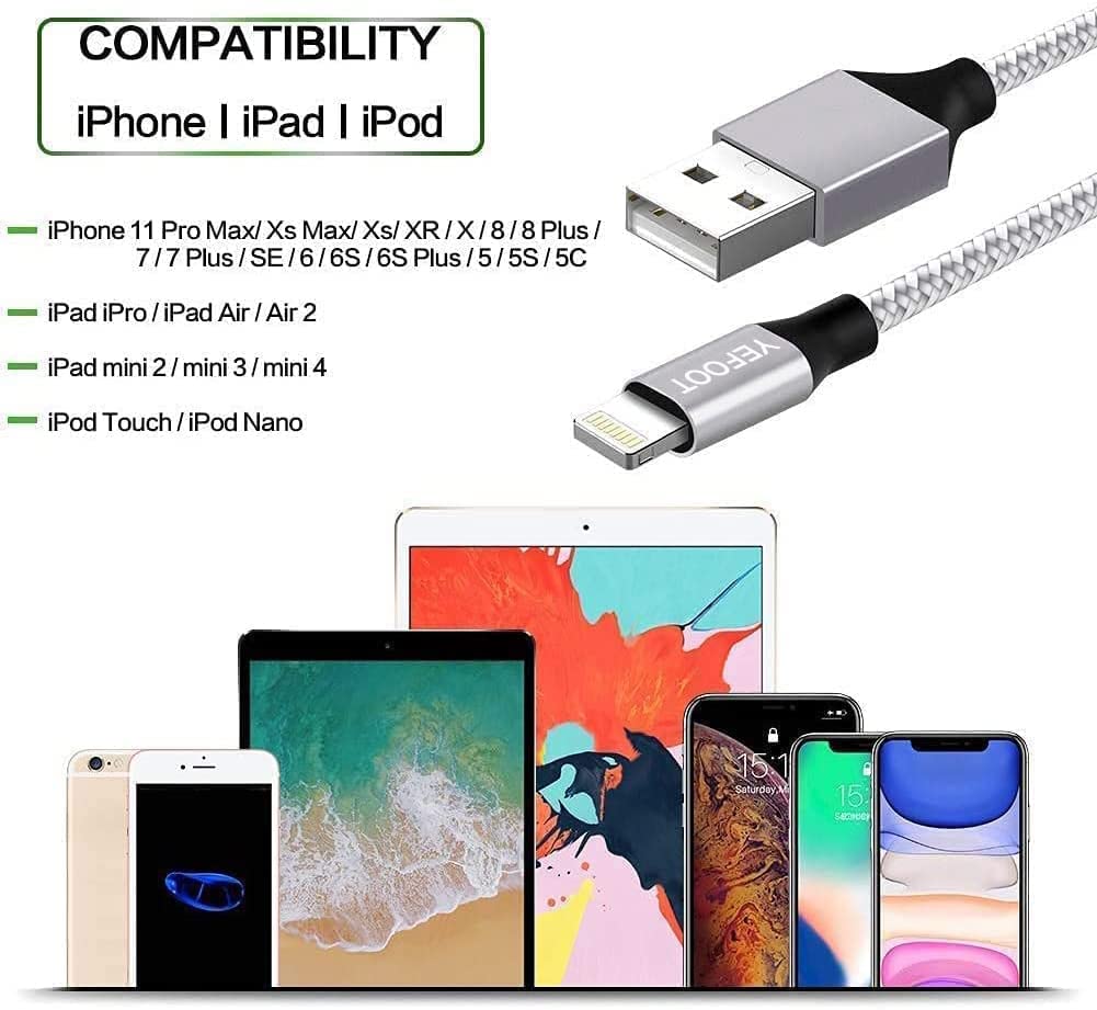 5Pack(3/3/6/6/10FT) [Apple MFi Certified] iPhone Charger Lightning Cable Compatible iPhone 13Pro/13/12Pro Max/12Pro/12/11/Pro/Xs and More-Silver&White