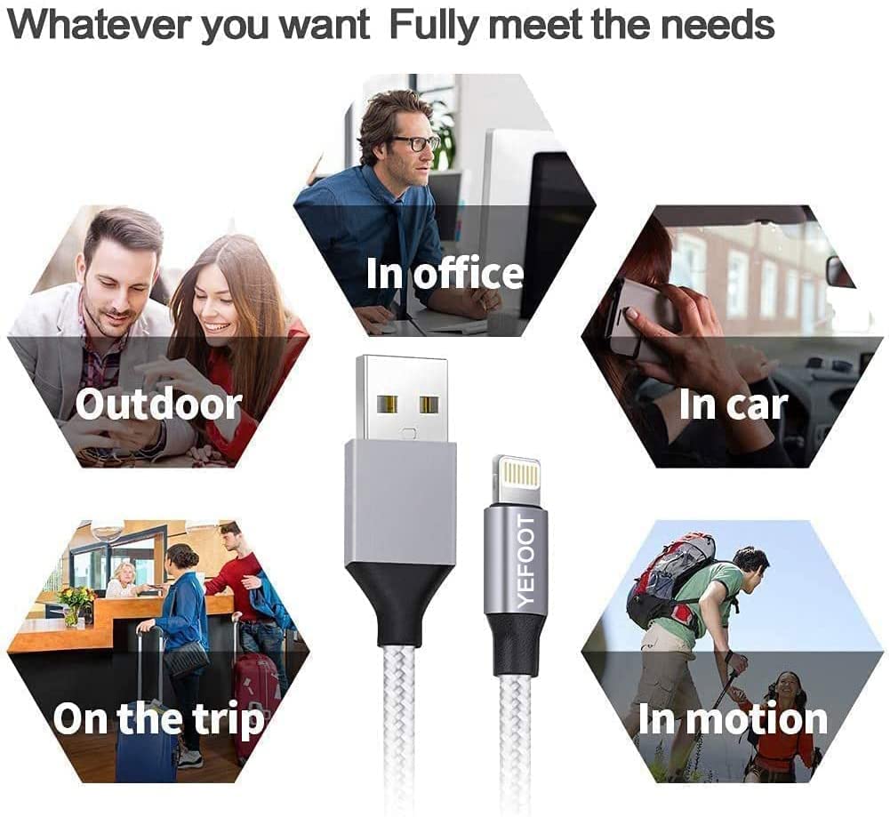 5Pack(3/3/6/6/10FT) [Apple MFi Certified] iPhone Charger Lightning Cable Compatible iPhone 13Pro/13/12Pro Max/12Pro/12/11/Pro/Xs and More-Silver&White