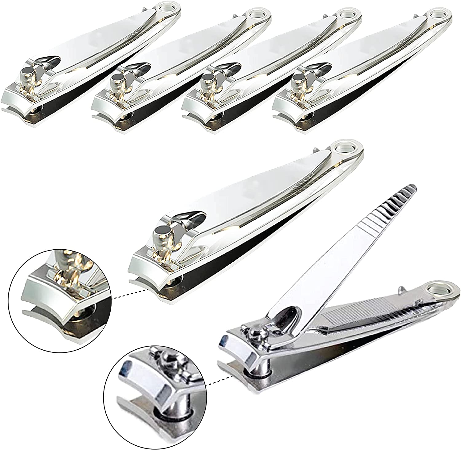 (6 Pack) Nail Clippers Set Stainless Steel Fingernail and Toenail Clipper, Finger Nail Toe Nail Clip Sharpest Nail Cutter Heavy Duty Curved Edge for Adults Men Women with Swing Out Nail Cleaner/File…