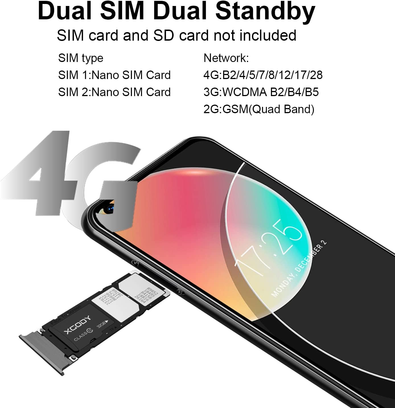 6.8 Inch Unlocked Smartphones, XGODY K30 Pro 4G Android 10.0 Cell Phone Cheap, Dual Sim Free Phones, Dual 5MP + 256GB Expandable Storage (Black)
