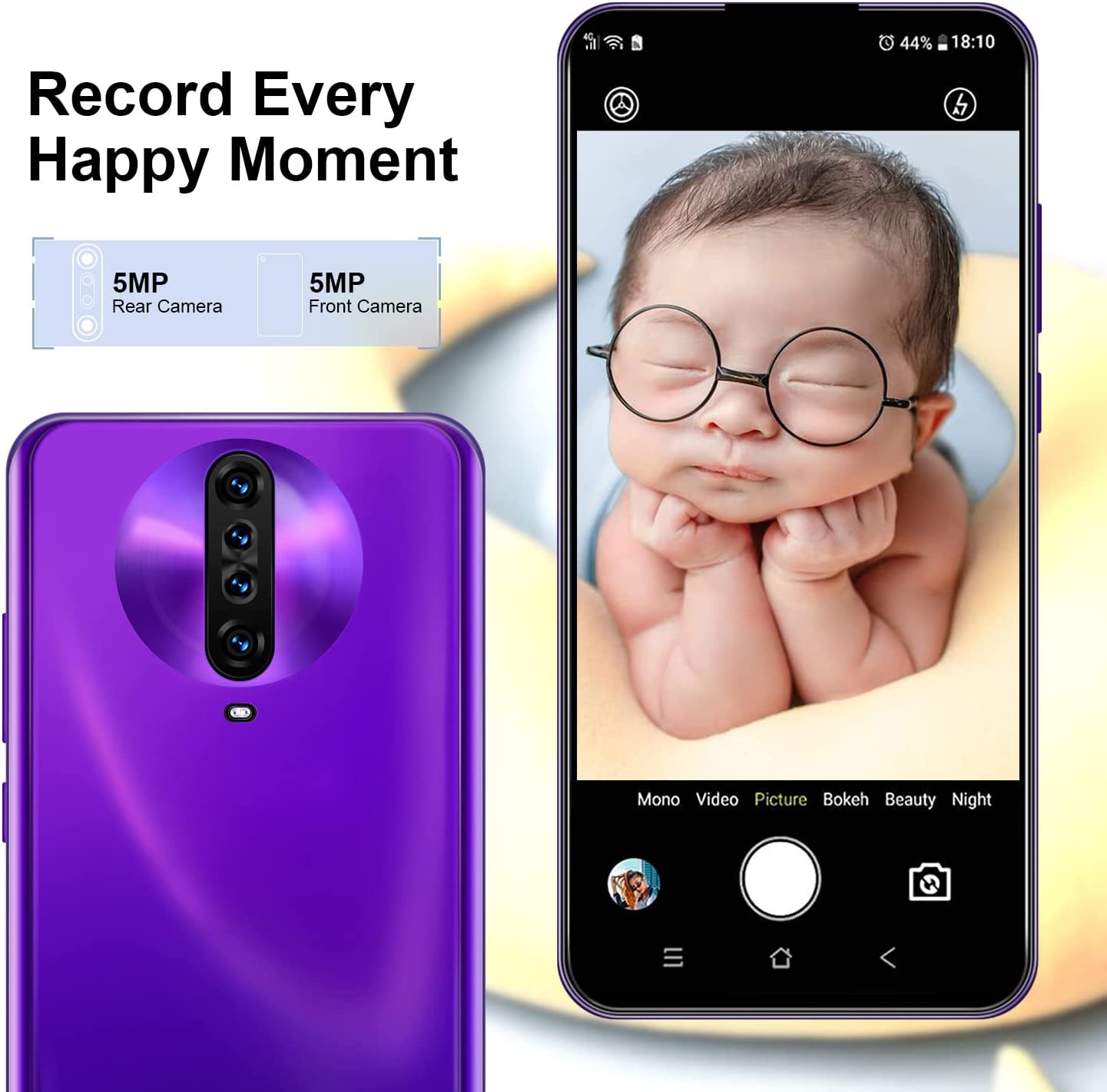 6.8 Inch Unlocked Smartphones, XGODY K30 Pro 4G Android 10.0 Cell Phone Cheap, Dual Sim Free Phones, Dual 5MP + 256GB Expandable Storage (Purple)