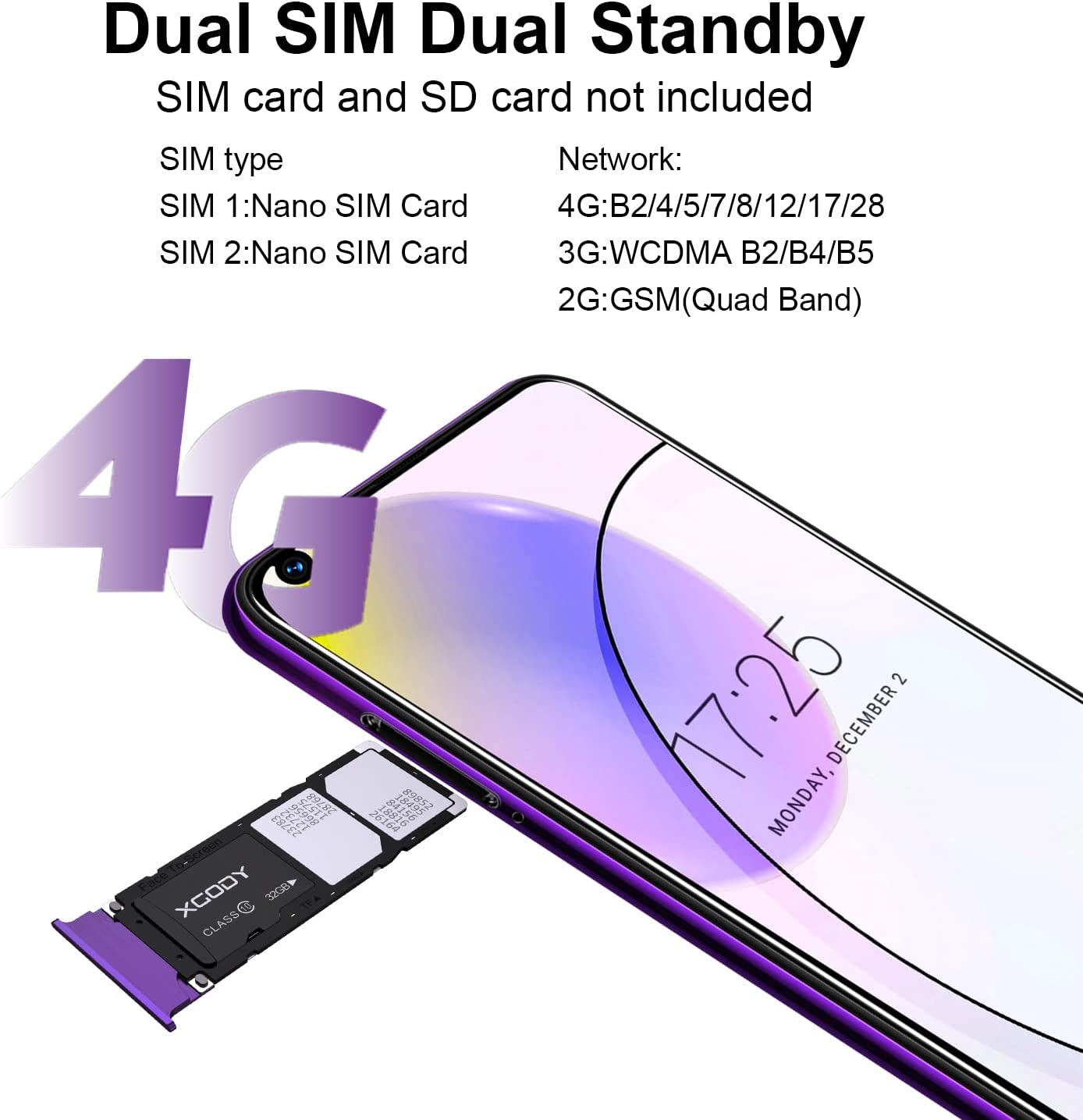 6.8 Inch Unlocked Smartphones, XGODY K30 Pro 4G Android 10.0 Cell Phone Cheap, Dual Sim Free Phones, Dual 5MP + 256GB Expandable Storage (Purple)