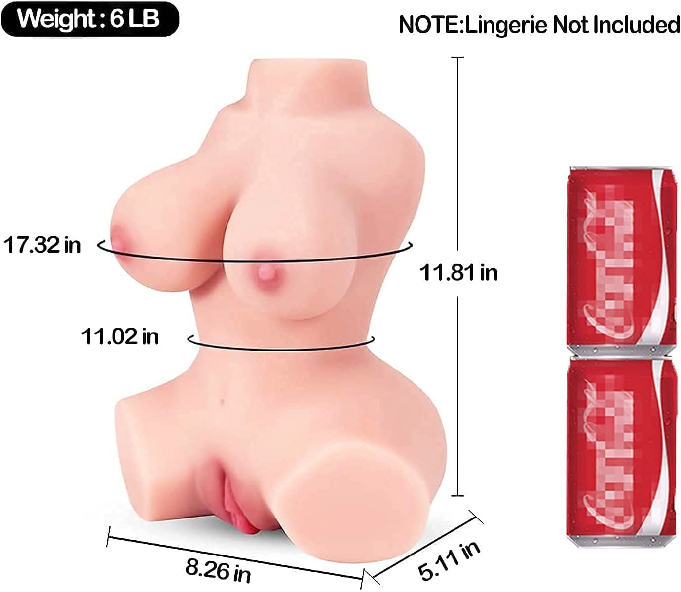 6LB Sex Doll Male Masturbator Pocket Pussy Ass Male Sex Toys for Men Masturbation, 3-in-1 Female Torso Adult Love Doll with Realistic Boobs for Vagina Anal Breast Sex (11.8x8.3x5.1In, Down-Sized)