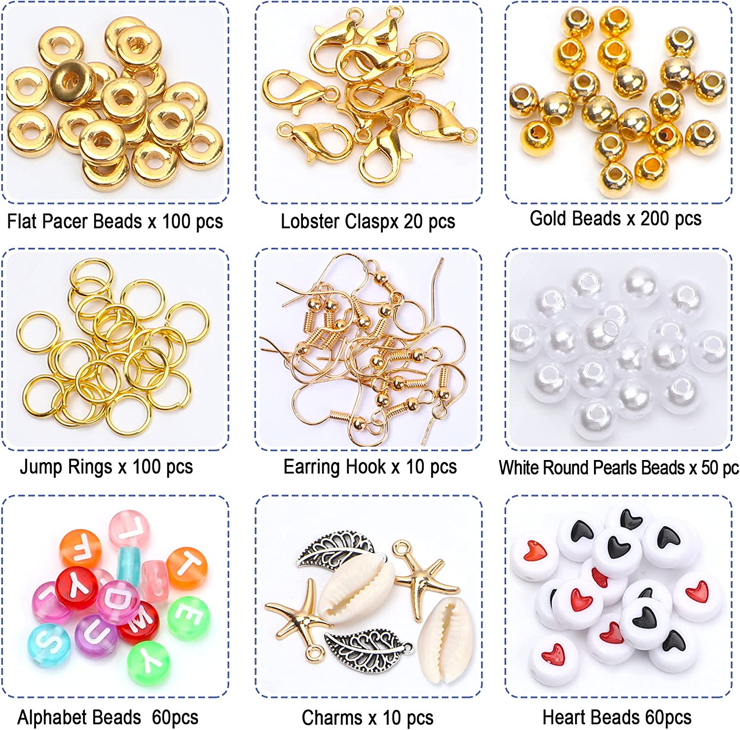 8835 Pcs Heishi Clay Beads for Bracelet Making Kit Alphabet Letter Flat Bead Jump Rings Charm Gold Beads Flat Pacer Bead Lobster Clasp Earring Hook White Round Pearls for Girls Jewelry Making