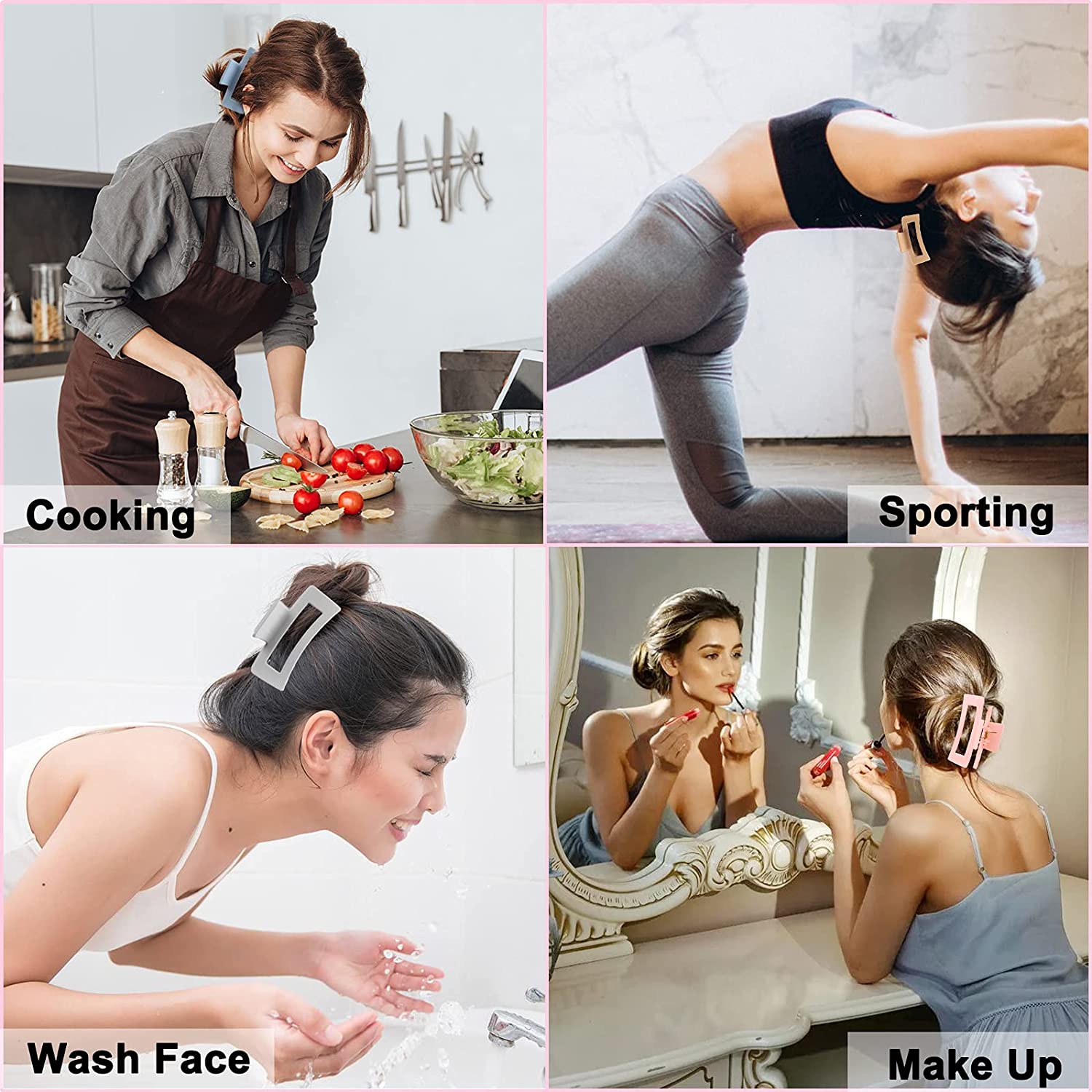8pcs Hair Clips Set, Non-slip Hair Claw Clips 3.5 in. Acrylic Banana Rectangle Claw Clips Matte Hair Clips Hair Clamps Hair Styling Accessories for Women Girls Thin to Thick Hair, Colorful Series
