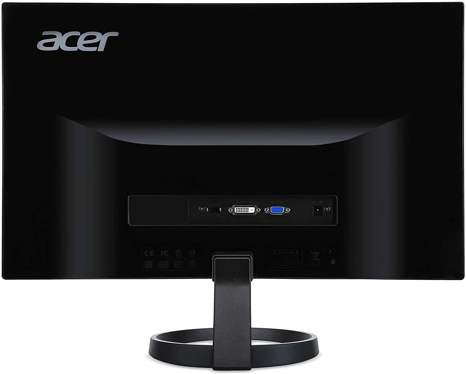 The Acer R Series 23. 8" wide viewing IPS display shows every detail clearly and vivid without color difference from any viewing angle. Its zero frame design puts no boundary on your visual enjoyment while the brushed hairline finish stand matches any environment. With Full HD resolution and superior 100 Million: 1 contrast ratio you get detailed imagery for viewing photos, browsing the web and also makes viewing documents side by side easy. It also supports VGA, DVI & HDMI inputs so you can easily power and extend the enjoyment from your smartphone or tablet on Full HD display. What's more, this display features power-saving technologies to conserve cost and resources. (UM. QR0AA. 001). Environmental certification: MPR II.
