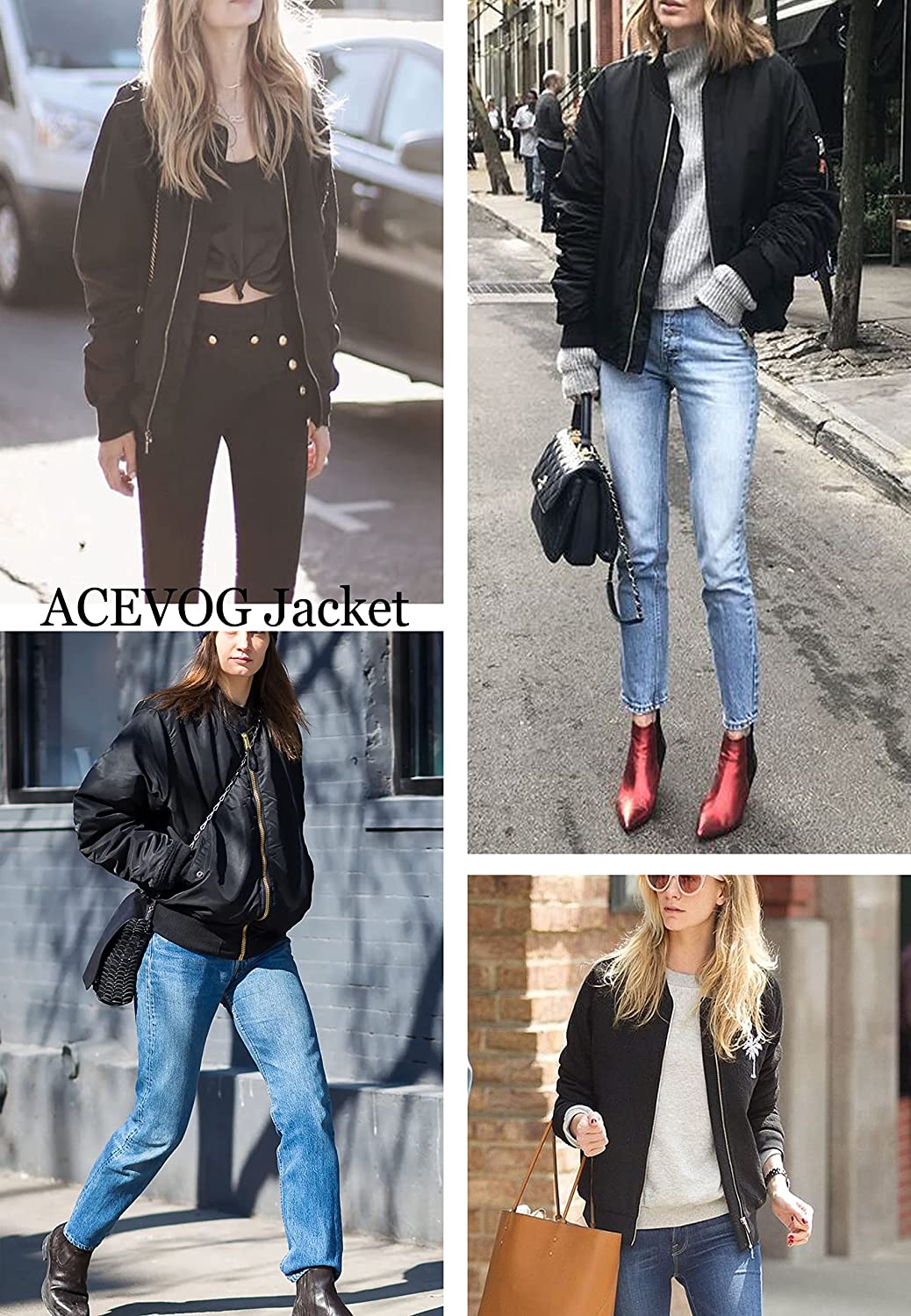 ACEVOG Women Fashion Satin Bomber Jacket Zip Up Casual Jacket Coat with Pocket Outfit
