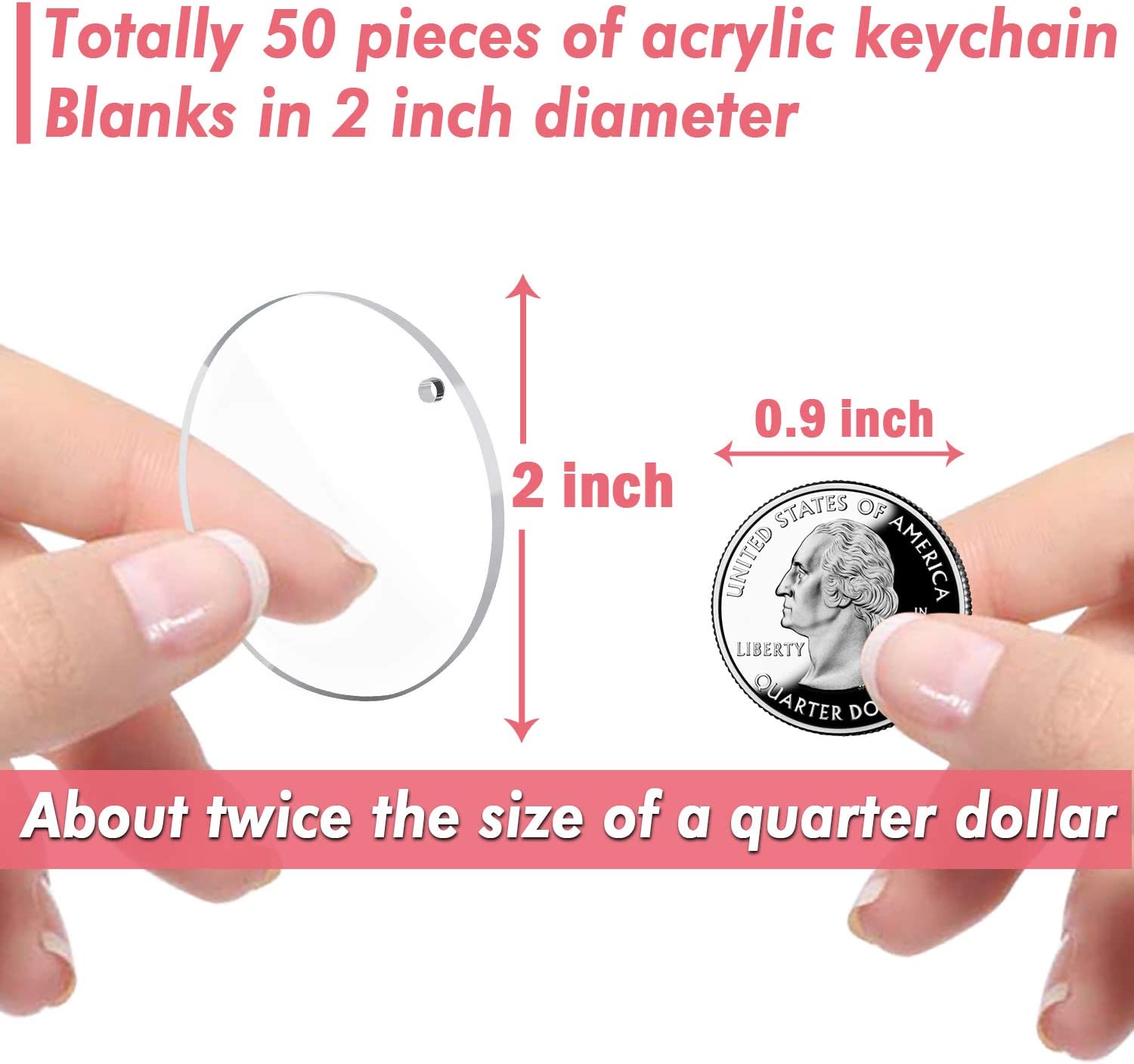Acrylic Keychain Blanks, Audab 50pcs Clear Keychains for Vinyl, Acrylic Transparent Circle Discs Acrylic Blanks Keychain Bulk for DIY Keychain, Crafting and Vinyl Projects