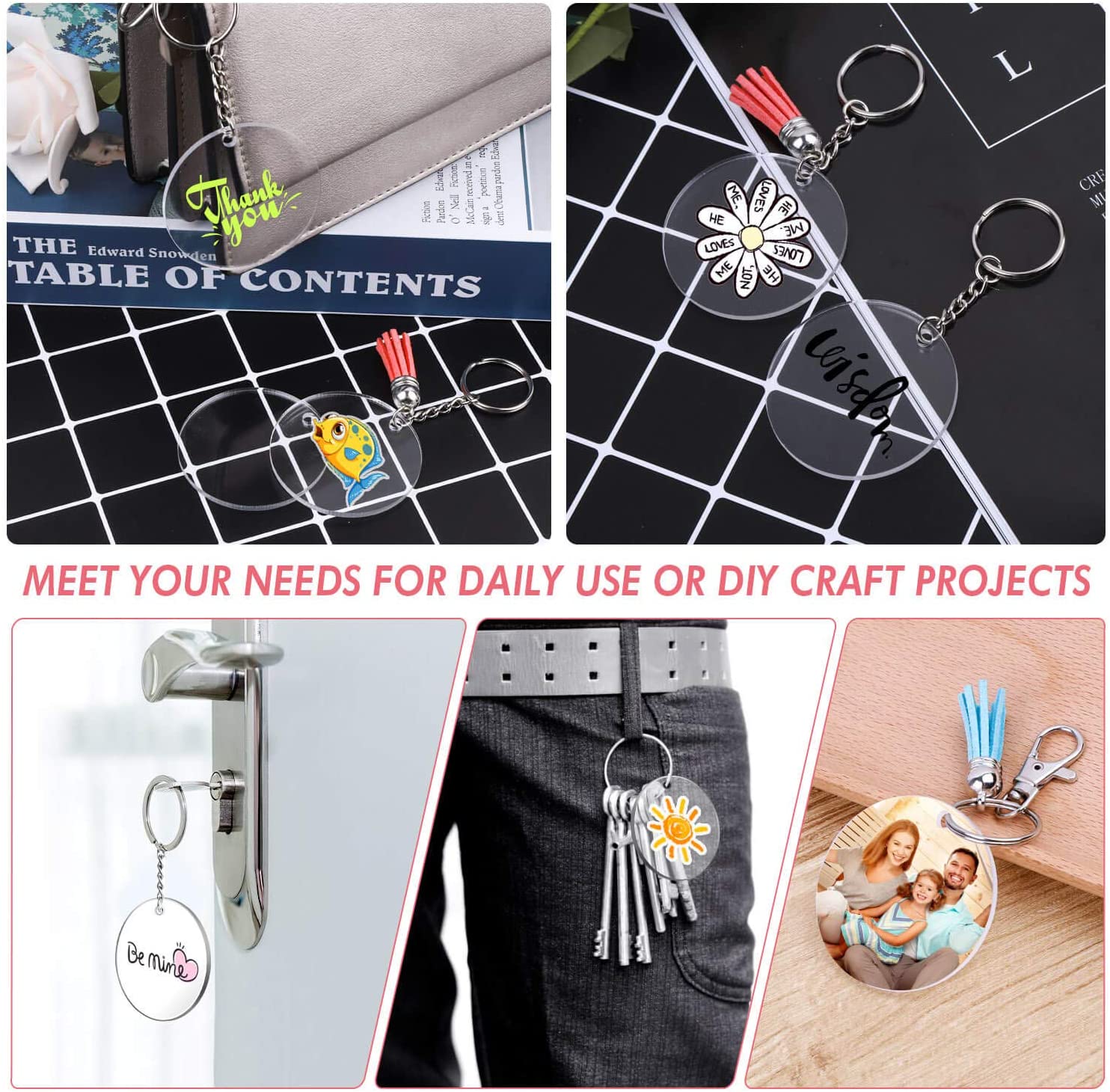 Acrylic Keychain Blanks, Audab 50pcs Clear Keychains for Vinyl, Acrylic Transparent Circle Discs Acrylic Blanks Keychain Bulk for DIY Keychain, Crafting and Vinyl Projects
