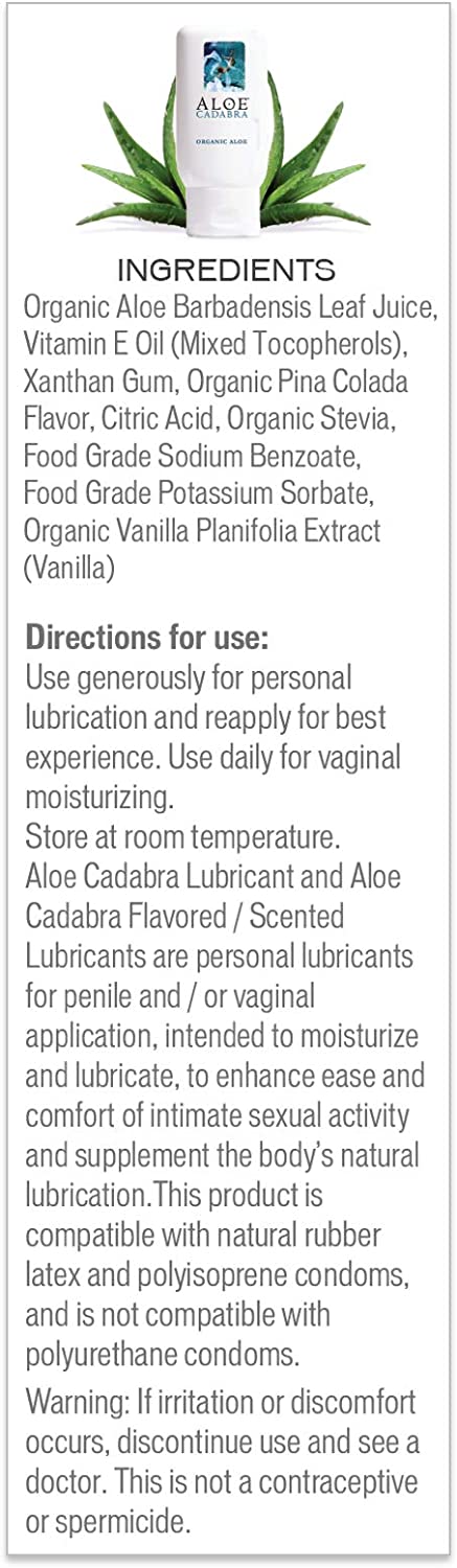 Aloe Cadabra Flavored Personal Lube for Oral Sex, Best Organic Edible Lubricant for Men, Women and Couples, Pina Colada, 2.5 Ounce