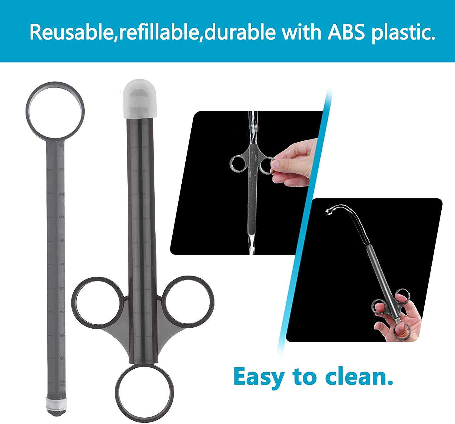 ANGCURE Lube Applicator Syringes, Lubricant Tube Shooter with Smooth Rounded Cap for Men, Women & Couples, Reusable, Easy Use & Clean [10ml Scales][Gray & Gray]