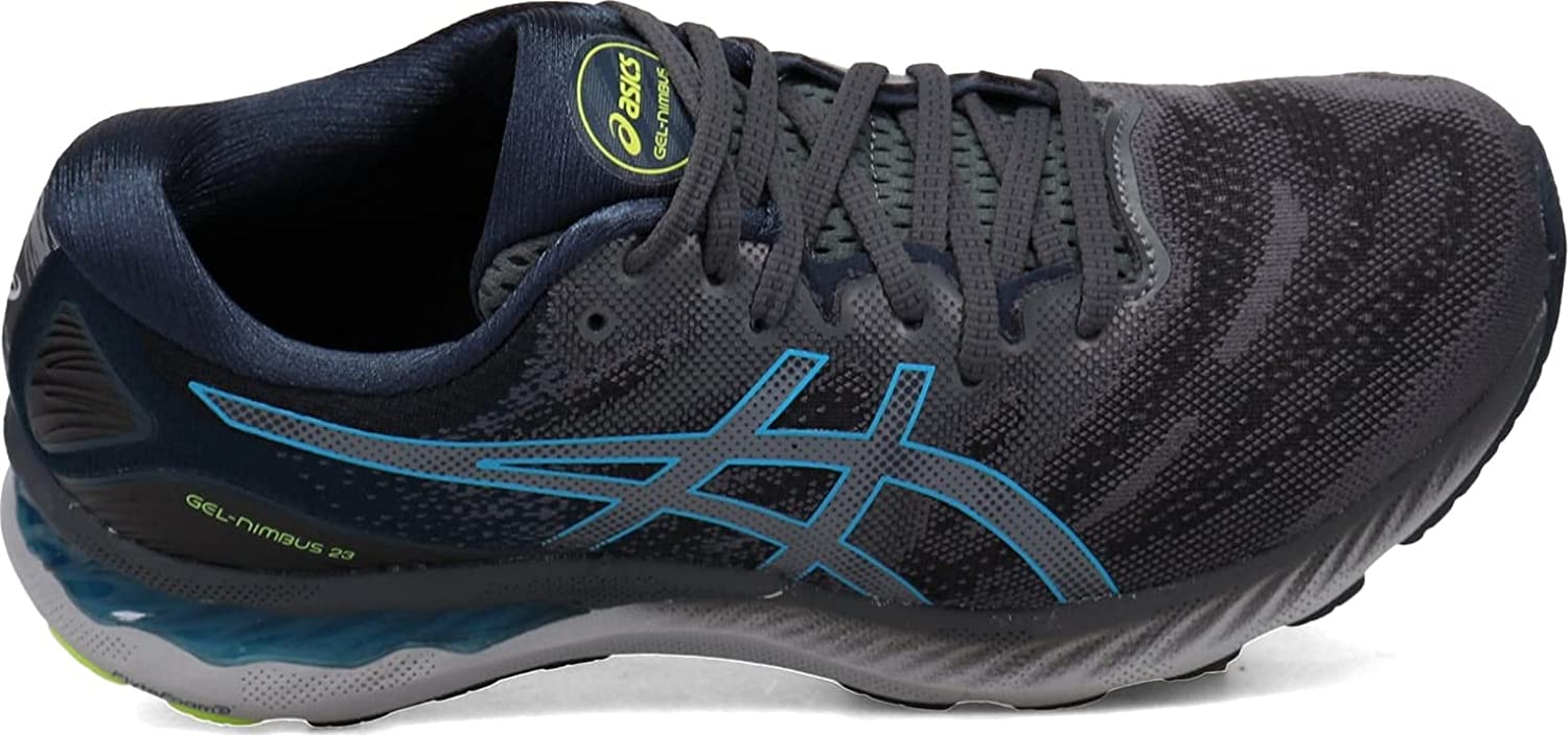 The GEL-NIMBUS 23 running shoe continues to offer excellent comfort and long-run impact absorption. Its improved stability provides a more balanced stride that's followed by smoother transitions. Constructed with comfort and breathability in mind, this shoe features a softer engineered mesh design for long runs. Engineered eyelet shaping helps the upper move more naturally with the foot, while a stretchy midfoot panel appropriately hugs the foot to generate better flexibility. Additionally, the shoe's upper is made with recycled materials to reduce waste and carbon emissions. Providing the runner with excellent shock absorption and softness, the GEL-NIMBUS 23 delivers more compression in the heel thanks to its softer GEL technology cushioning unit and contoured design lines. Also, a gender-specific TRUSSTIC device provides an articulated amount of support in the right direction for men and women to help generate a smooth transition. Under the toe, the inclusion of gender-specific pillars help cushion the body and help runners experience a softer feel. Simultaneously, the OrthoLite X-55 sockliner equips runners with a forgiving, yet responsive stride. The components of the GEL-NIMBUS 23 shoe help increase the softness without forgoing the integrity of the shoe's ride. Our 23rd version of the GEL-NIMBUS continues to make advancements within the lineage by offering improved support and comfort for distance runners.