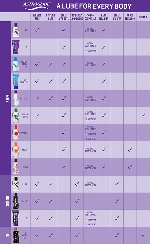 This unique blend of high-quality silicone-based lubrication offers silky smooth satisfaction for sex play in and out of the water. Our lubricant is extremely long-lasting with a silky feel that is never sticky. The natural ability of silicone to resist water lets our lubricant stay slick and work great in settings where other types of lube wash away. Our hypoallergenic formula is a great choice for people with skin sensitivities. Made with coconut oil, ASTROGLIDE’s silicone lubricant gel stands out against other types of lube, both silicone-based and beyond. This lubricant is silky smooth, super long-lasting and works great for sensitive skin – from the shower to the bedroom. Let ASTROGLIDE bring you luxuriously long-lasting lubrication with this no-drip silicone gel.