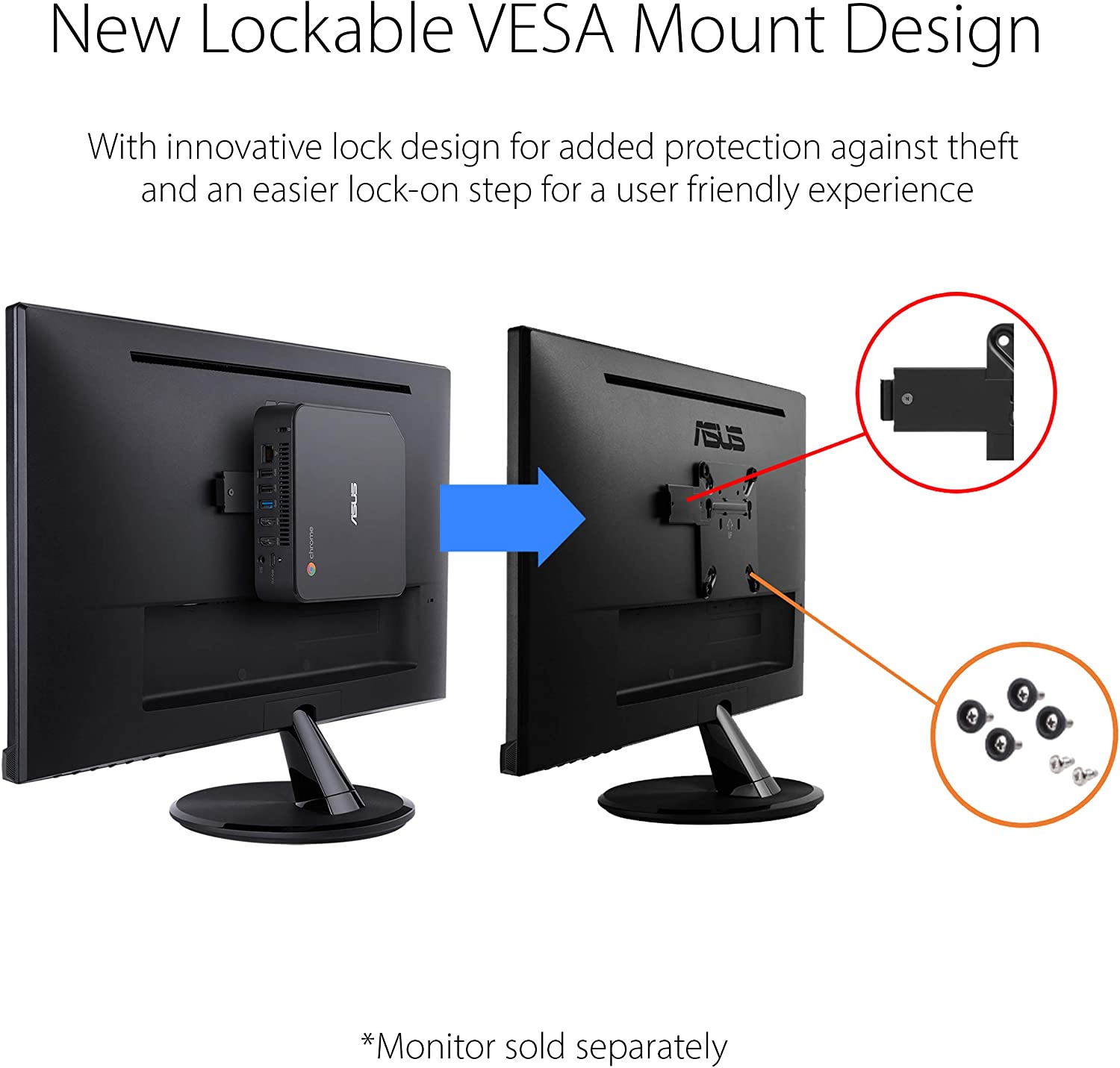 ASUS Chromebox 4 features Intel Celeron 5205U processor and DDR4-2400 memory for faster, smoother and more energy-efficient performance. It supports up to three 4K displays and is equipped with a versatile USB-C port that enables power delivery and DisplayPort connections. Enjoy Google-enabled apps with WiFi 6 for ultrafast network speeds.