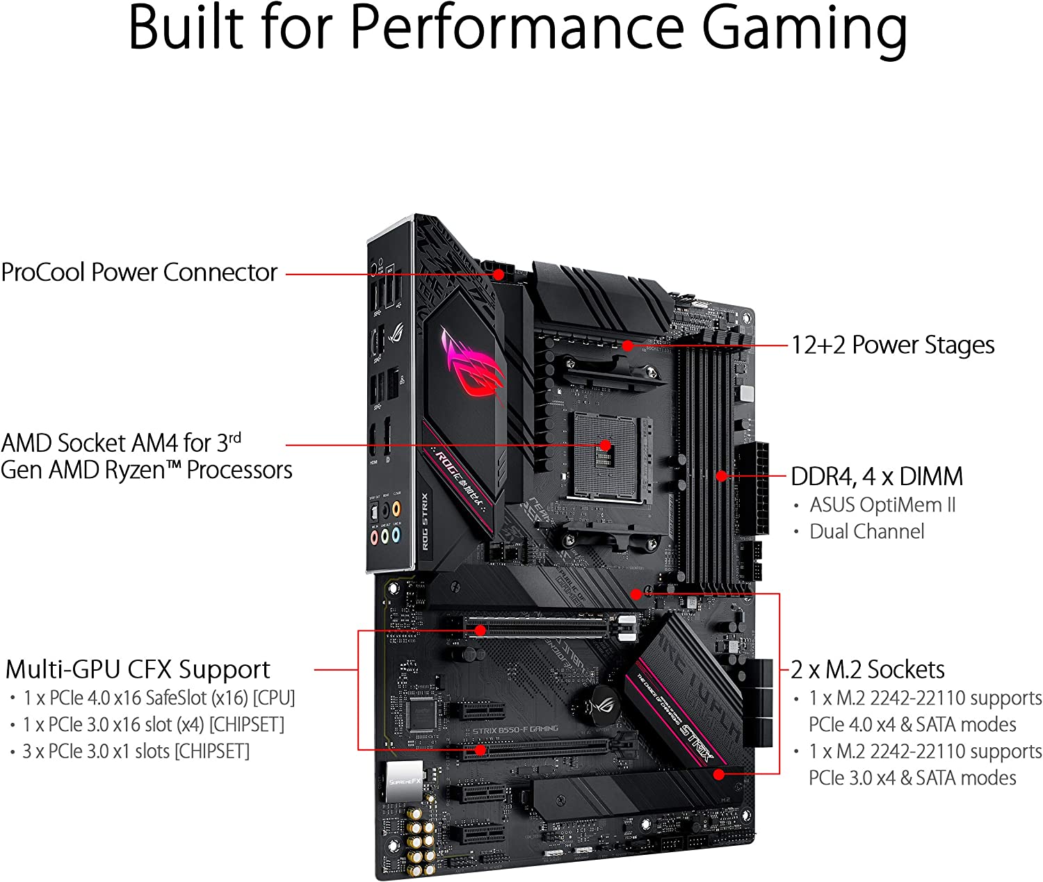 Experience next-level performance and connectivity with the ASUS ROG Strix B550-F Gaming, featuring PCIe 4. 0 and 2. 5Gb Ethernet. Robust power and effective cooling make the ROG Strix B550-F Gaming the perfect partner for 3rd Gen AMD Ryzen CPUs. Futuristic aesthetics, intuitive software, and a reliable Stack Cool 3+ design put your build in the winner’s circle. Free 3-months Adobe Creative Cloud Subscription: Receive complimentary access with the purchase of this product (offer valid from 9/15/2021 to 9/15/2022) visit /public/picture123/20230409/rfb4sggpima62235 to claim.