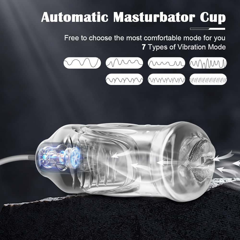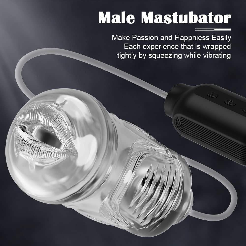 Automatic Sucking Male Masturbators with 7 Vibration & Suction Modes,Transparent Male Stroker Blowjob Stimulation Sex Toy,Realistic Vibrating Elastic Masturbator with Clear 3D Textured Tight Vaginal