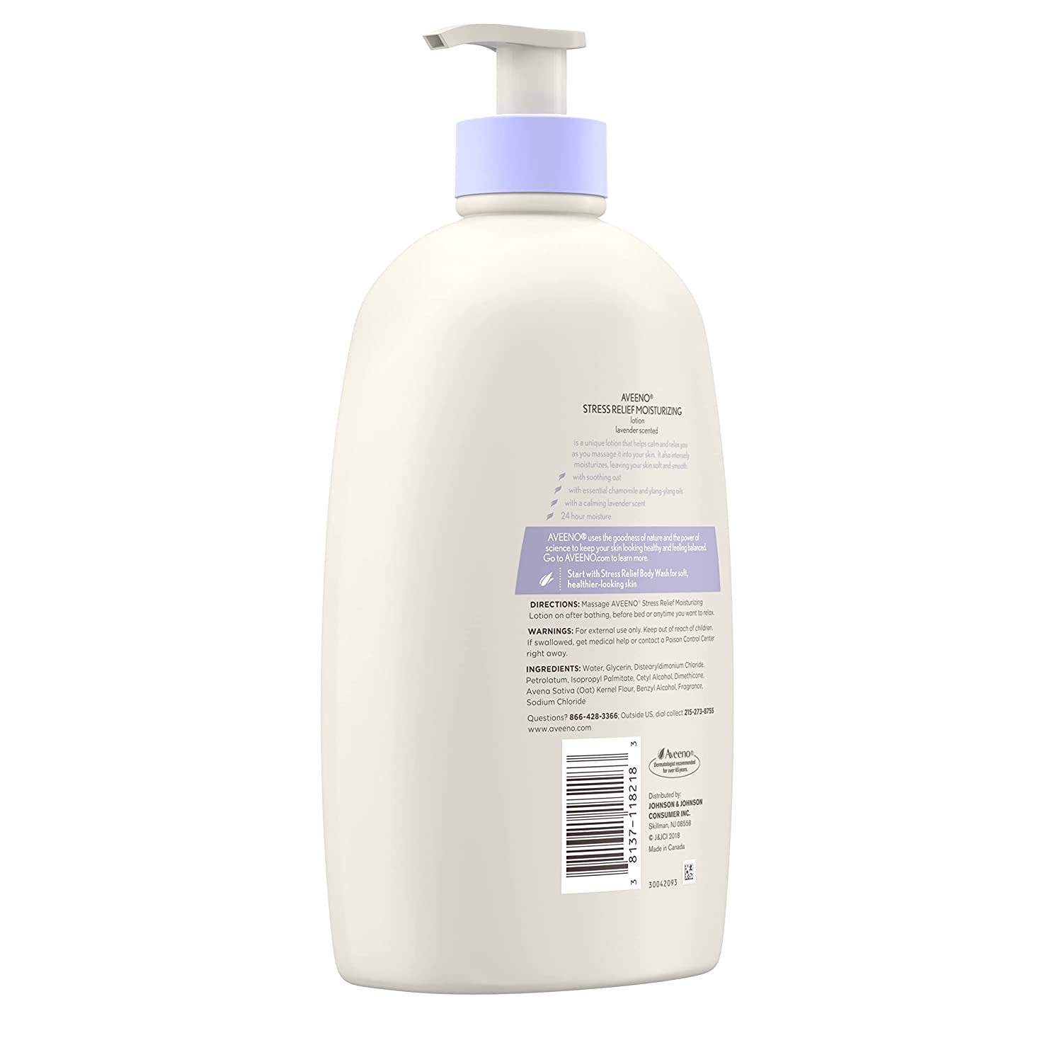Aveeno Stress Relief Moisturizing Lotion helps calm and relax you while moisturizing for a full 24 hours to leave skin soft and smooth. Using the goodness of nature and the power of science, this soothing body lotion is made with natural oatmeal and intensely hydrates skin, leaving it feeling soft and smooth. It also combines the calming scent of lavender, and chamomile and ylang-ylang essential oils that help relieve stress as you massage it into your skin. This lavender body lotion has a nourishing non-greasy formula that absorbs quickly for lasting moisture throughout the day and is from Aveeno a dermatologist recommended brand. Good for Dry and Sensitive skin.