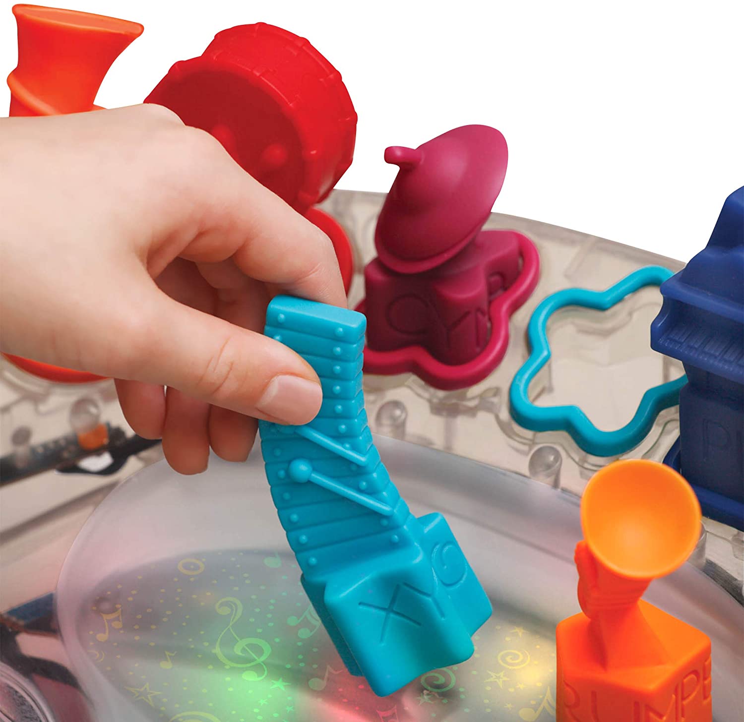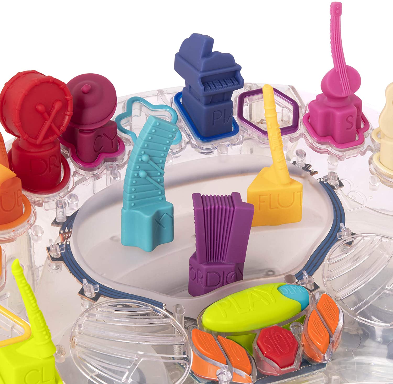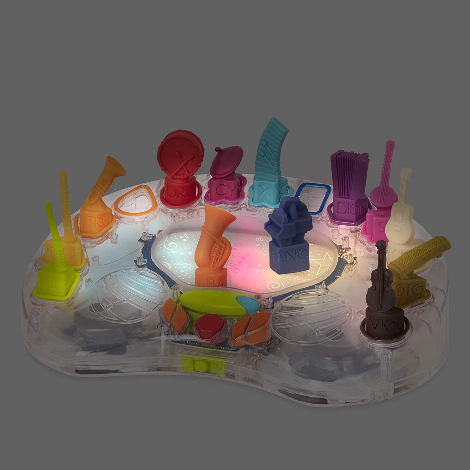 Give the gift of beautiful music with the B. Symphony toy orchestra from b toys! 13 instruments. 15 songs. The musical possibilities are endless. Choose your song and up to 6 instruments. Place them in the orchestra pit and hear them play all together. Change up the instruments (while the song plays) for a musical transformation. The perfect birthday or Christmas present for 3-6-year-old girl or boy. One of the best musical toys for toddlers and kids a little older, this toddler music set is sure to charm The whole family! Share a unique moment with your child as he discovers the beautiful sound The sitar can make or bring it to the next family reunion and see how this toy orchestra will please all generations. Beautiful, rich, professionally recorded sounds; it feels like conducting a real Symphony! Control the volume and the Tempo too! Early introduction to music concepts can kick-start learning and will offer lifelong benefits. Kids respond best to the music experience when they actively experience It, like with this musical instrument set for toddlers. This Symphony orchestra comes with 13 toy musical instruments for kids, a music booklet, detailed instructions of all the functions and 6 x AA batteries. With endless musical combinations, This one will give your home musical Vibes for sure. Music maestro!