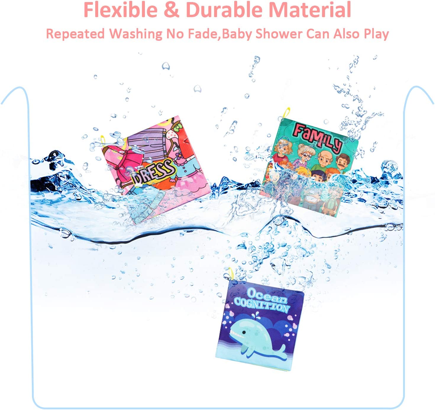 Baby Bath Books,Nontoxic Fabric Soft Baby Cloth Books, Early Education Toys,Waterproof Baby Books for Toddler, Infants Crinkly Cloth Book Bath Toys for 6 to 12 - 18 Months - Pack of 8