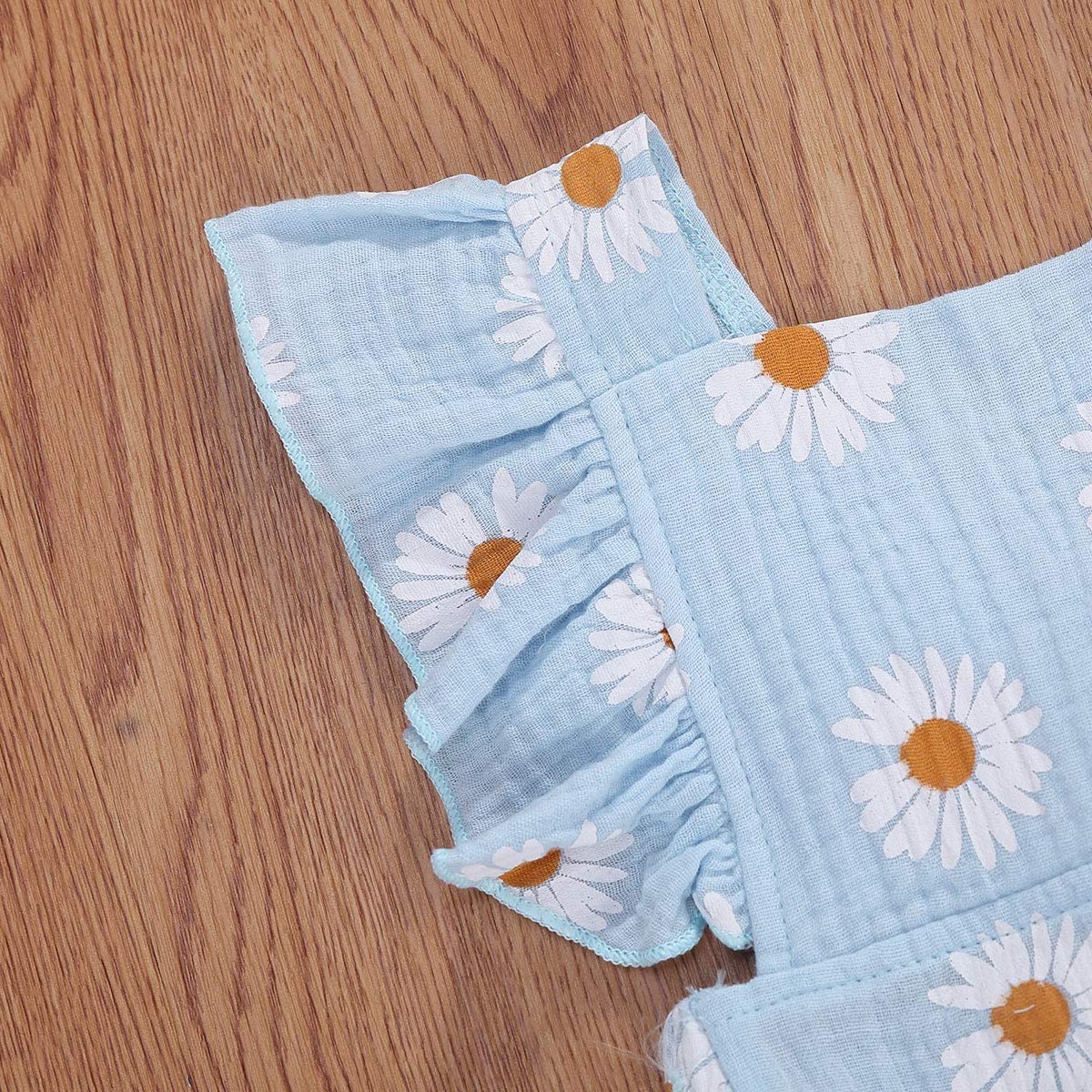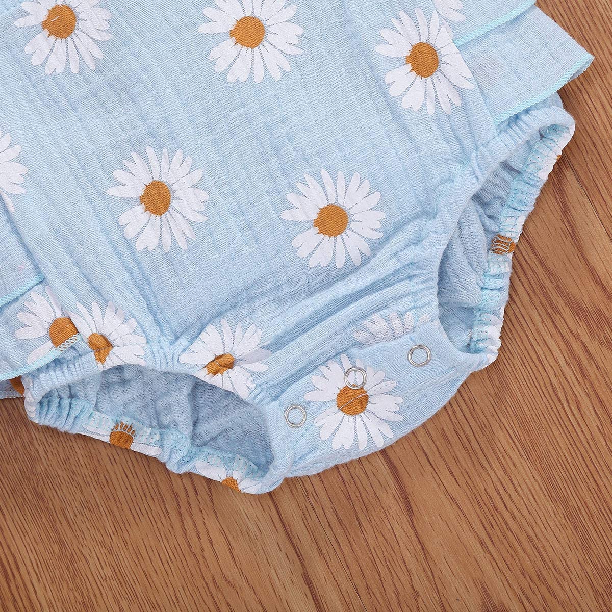 Baby Girls Daisy Playsuits Ruffled Bodysuit+Headband Print Fly Sleeve Romper Floral Jumpsuit Infant Summer Clothes