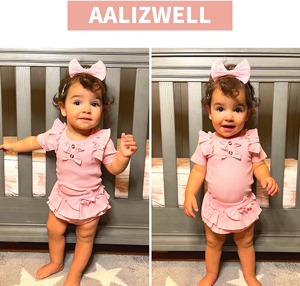 Baby Girls Short Sleeve Bodysuit Bloomer Shorts Ribbed Outfits
