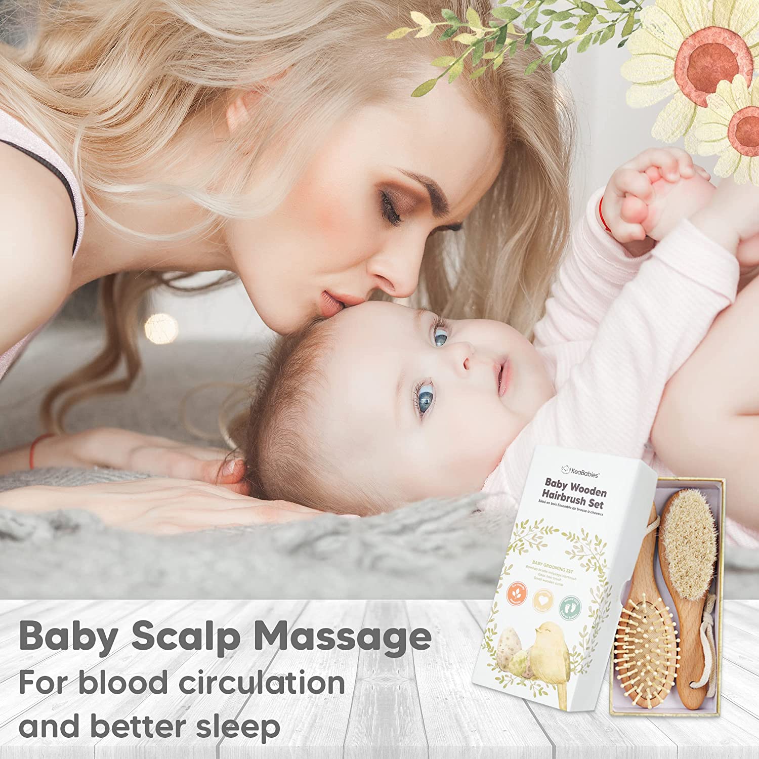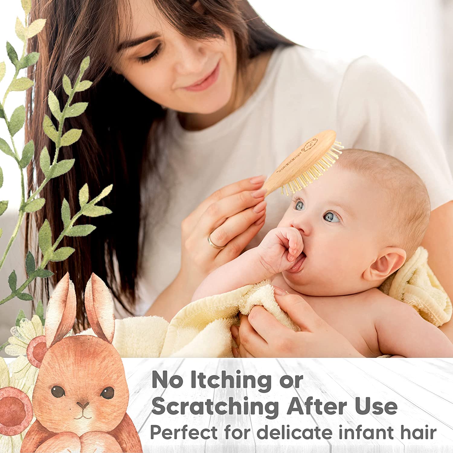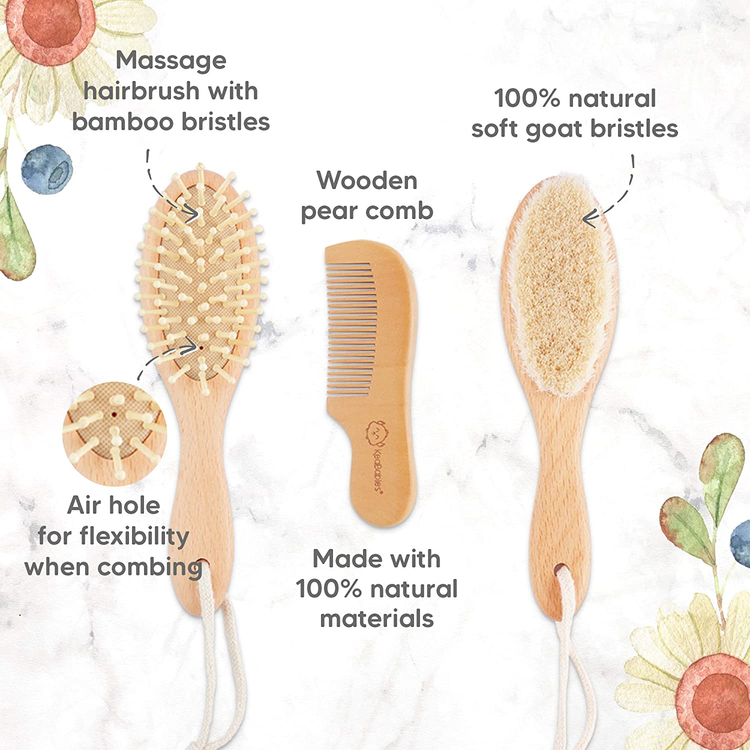 Baby Hair Brush - Natural Wooden Cradle Cap Brush with Soft Goat Bristle - Baby Brush Set for Newborns - Toddler Comb - Perfect Scalp Grooming Product for Infant, Toddler, Kids (Oval, Walnut)