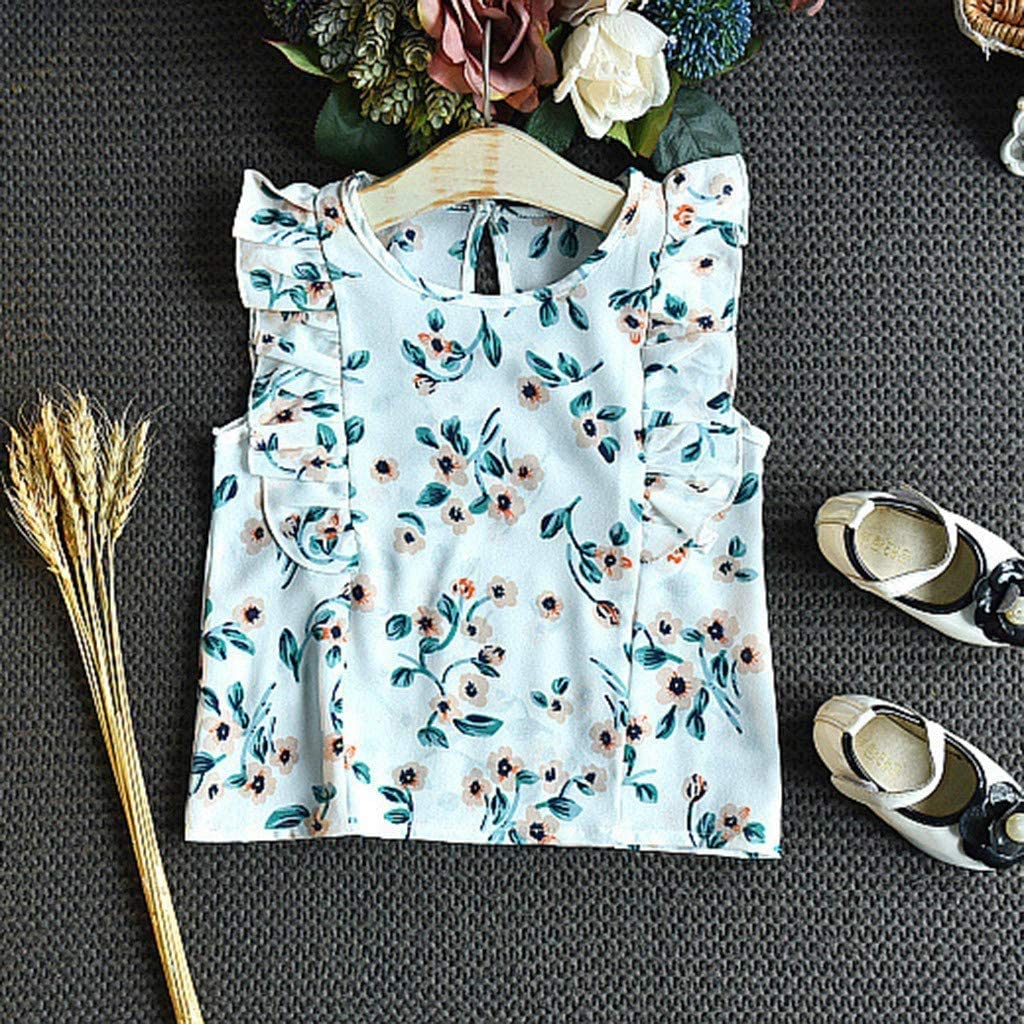 Baby Toddler Girls Summer Outfits 2-7 Years Kids Flower Print T-Shirt Sleeveless Top Belt Shorts Pants Set