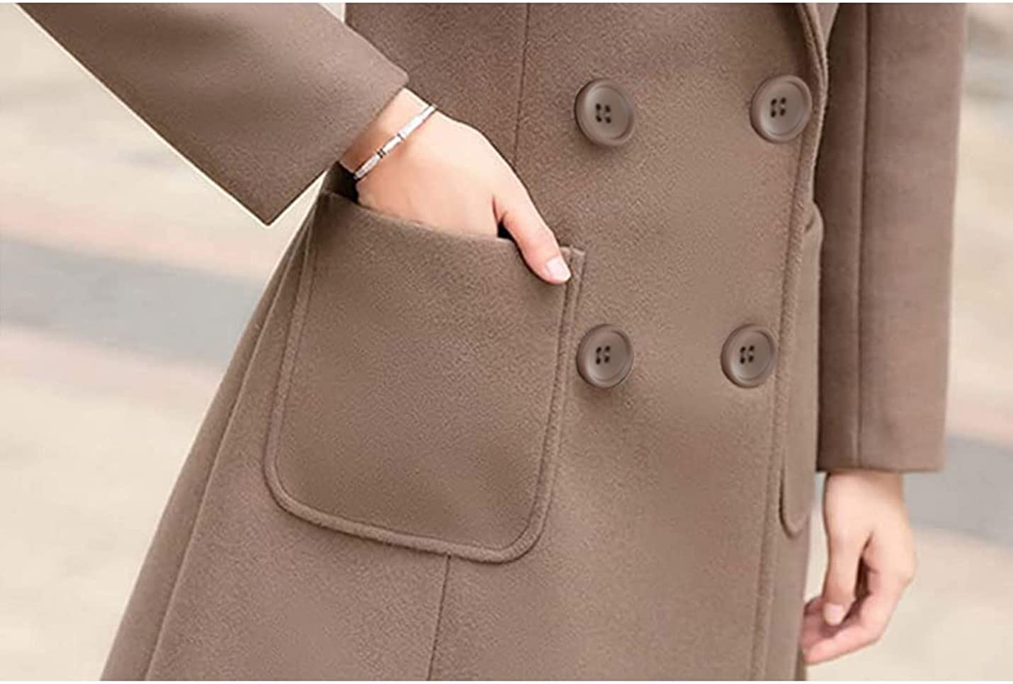 Bankeng Women Winter Wool Blend Camel Mid-Long Coat Notch Double-Breasted Lapel Jacket Outwear