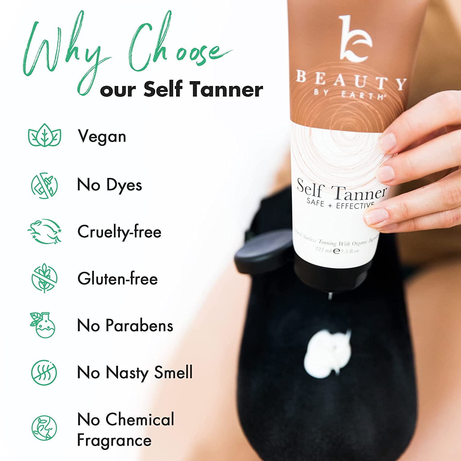 Beauty by Earth Self Tanner Tanning Lotion - Medium to Dark Fake Tan Self Tanning Lotion for Body, Gradual Tanning Lotion Self Tanner for Natural Looking Self Tan, Sunless Tanner Tan Lotion