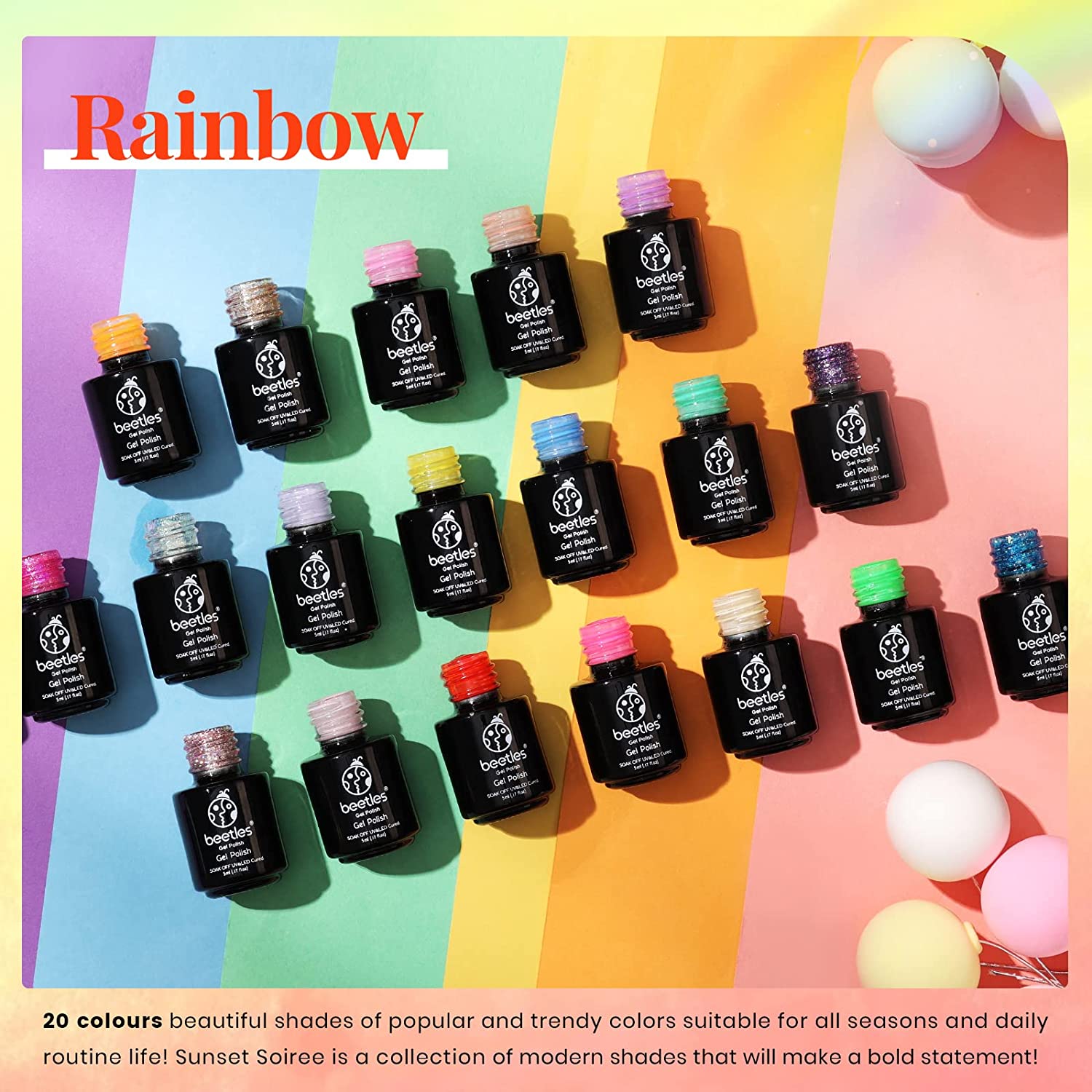 Beetles 20 Colors Rainbow Summer Gel Nail Polish Kit, Soak Off LED Lamp Gel Nail Polish Set Glitter Nude Gel Polish Starter Kit with Glossy & Matte Top Gel Base Coat Kaleidoscope Mother's Day Gifts fo