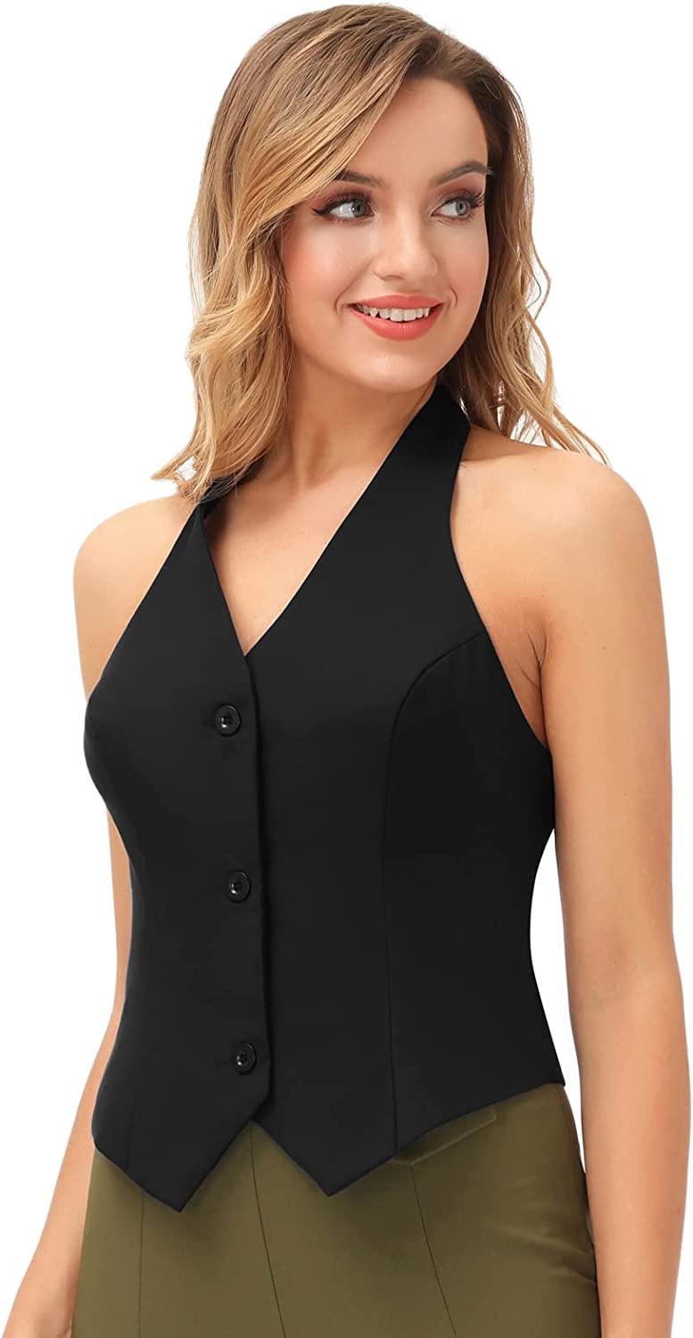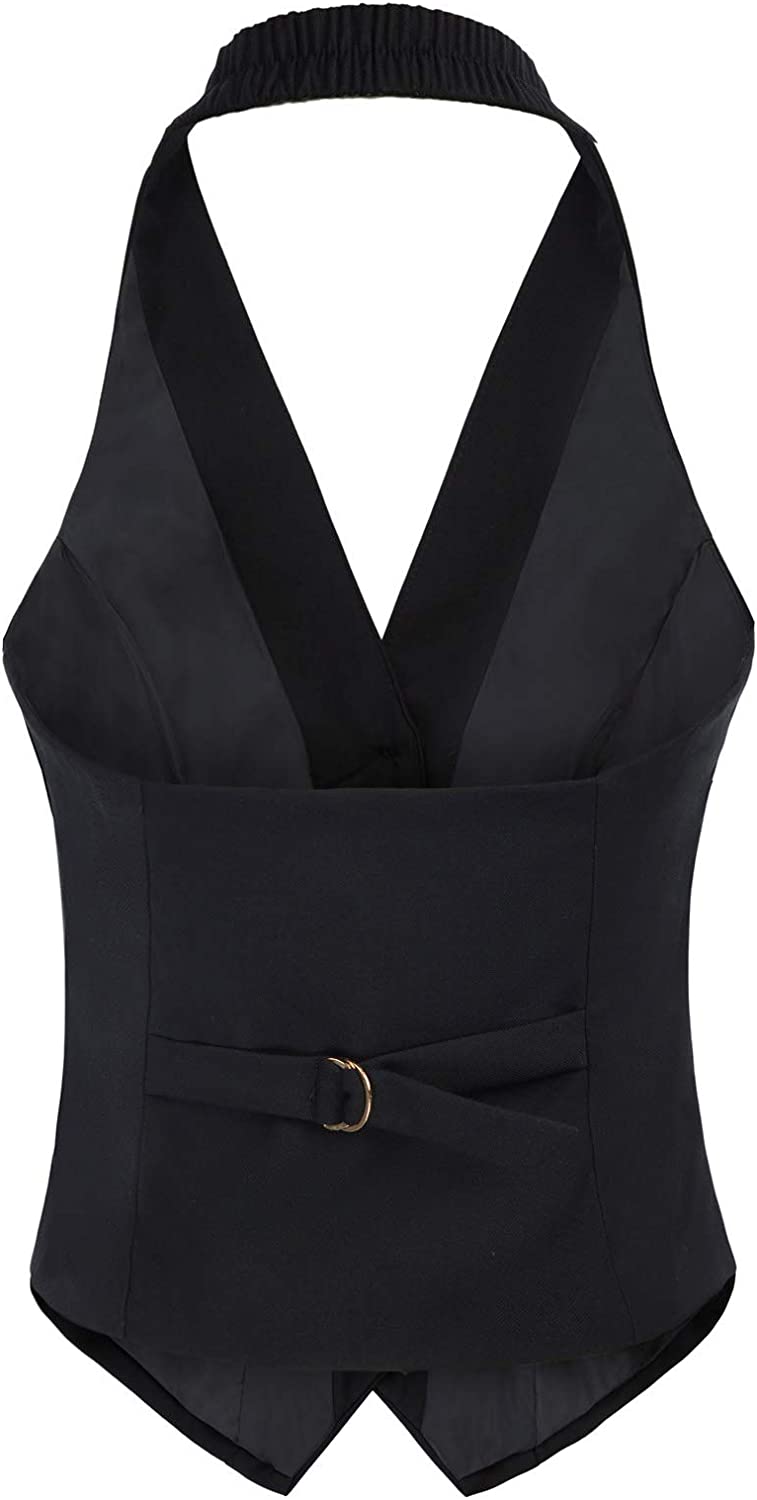 Belle Poque Womens Vintage Waistcoat Vest Halter Neck Button Down Dressy Vests